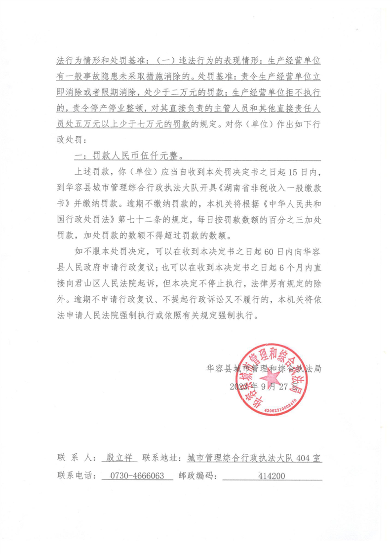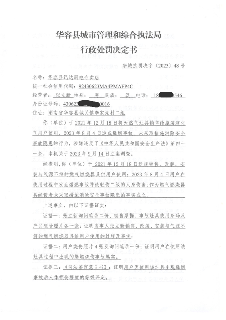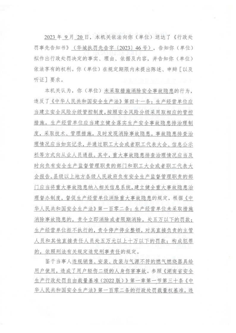 (华城执罚决字[2023]48号)对迅达厨电违反安全生产法的行政处罚决定公示