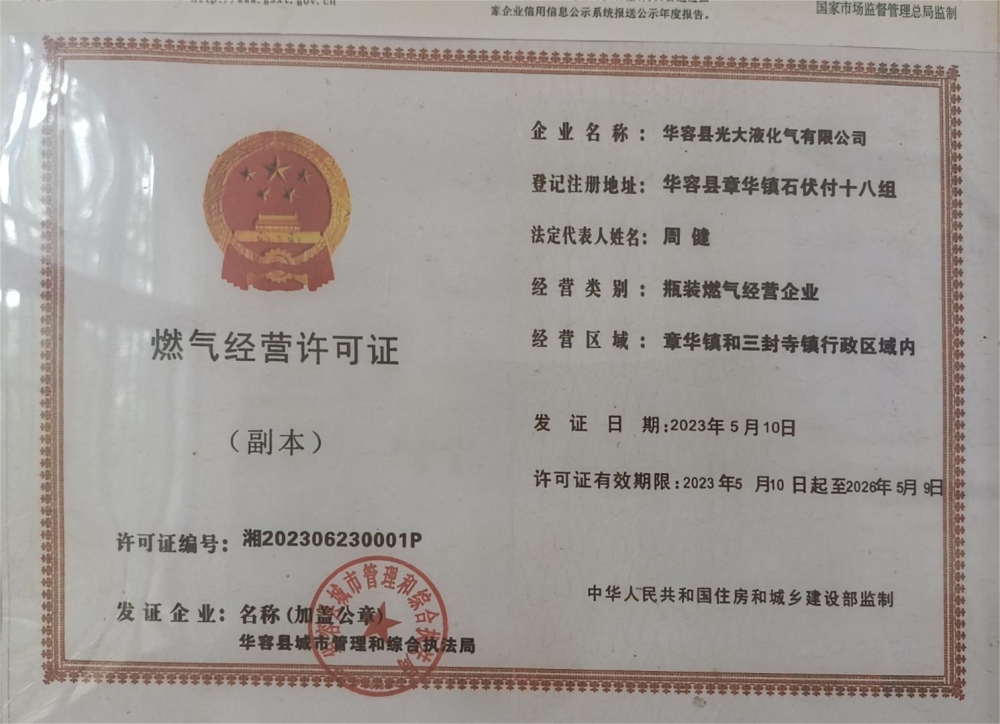 华容县光大液化气有限公司珠头山气站燃气经营许可证证照延续公示