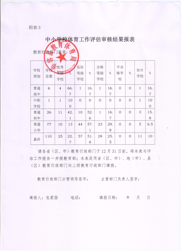华容县学校体育工作评估审核结果报表