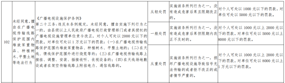 | 公开依据 | 《广播电视管理条例》《广播电视设施保护条例》 | ||