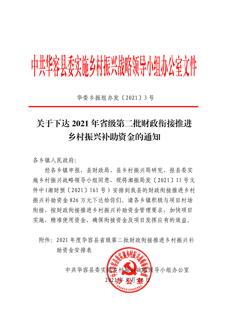 2021年省级第二批财政衔接推进 乡村振兴补助资金