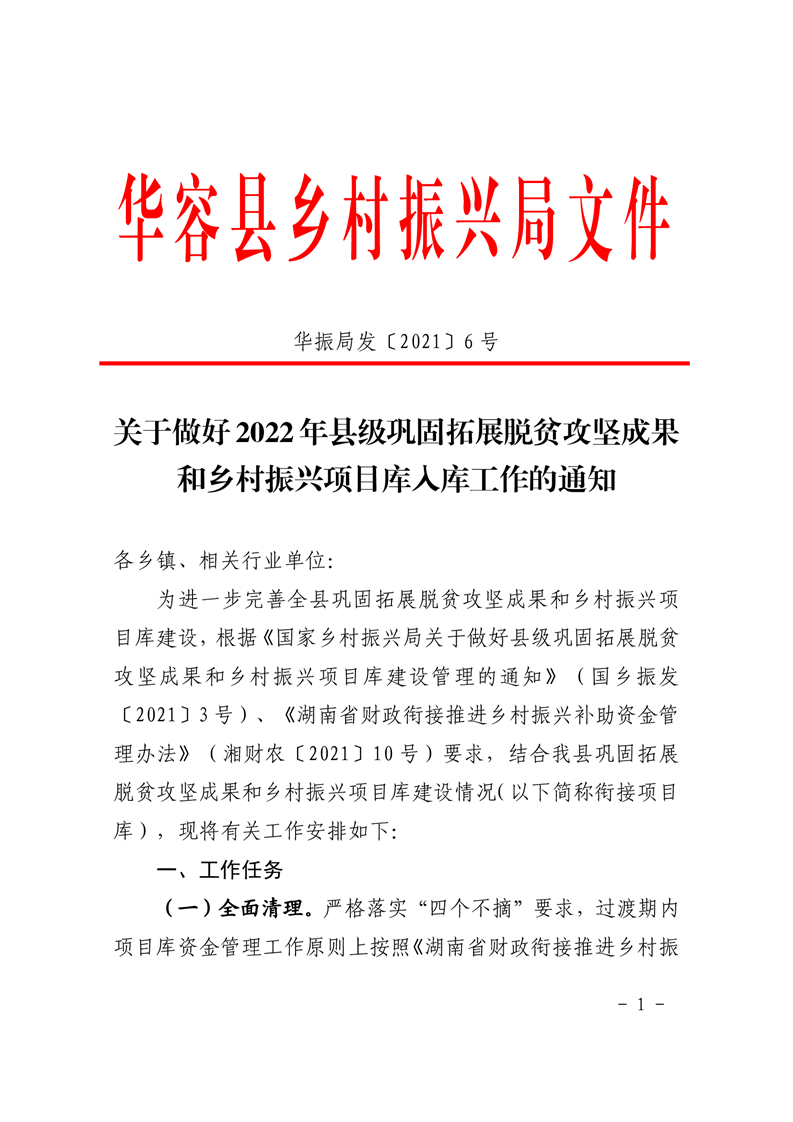 关于做好2022年县级巩固拓展脱贫攻坚成果和乡村振兴项目库入库工作的通知