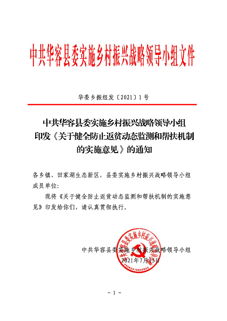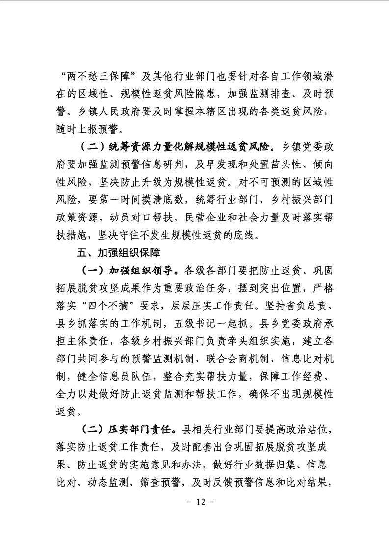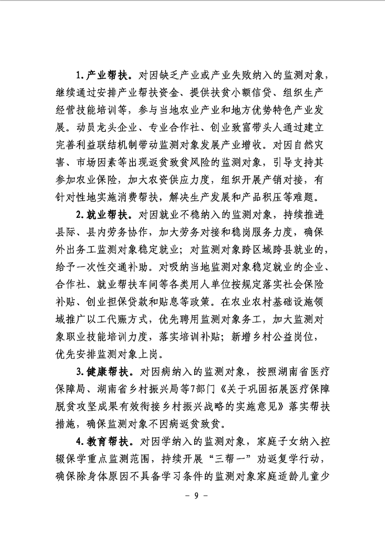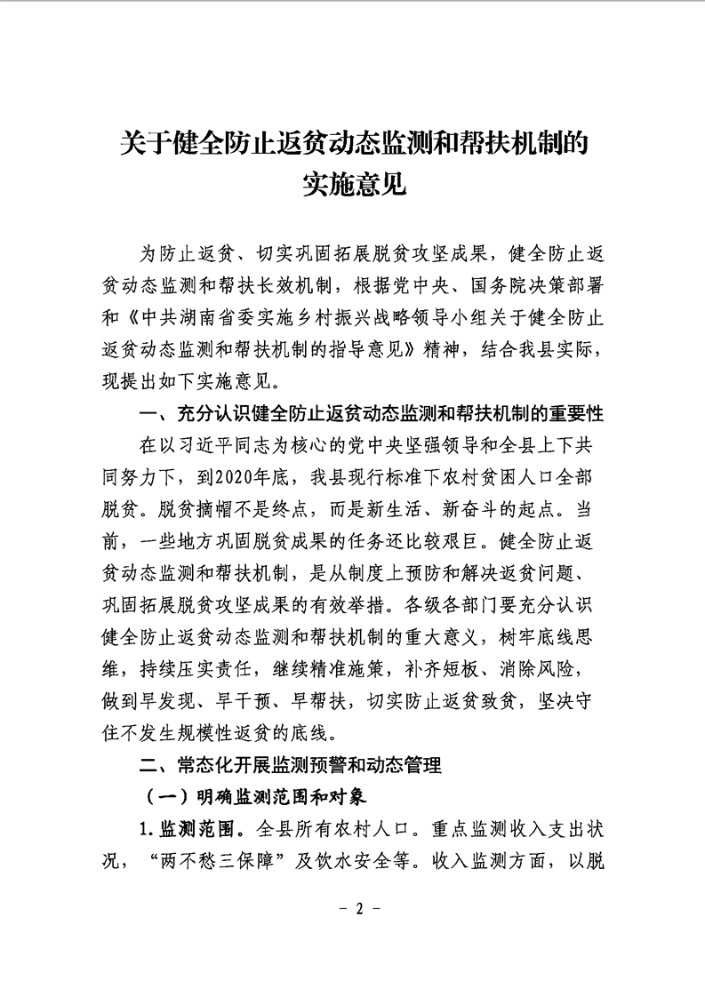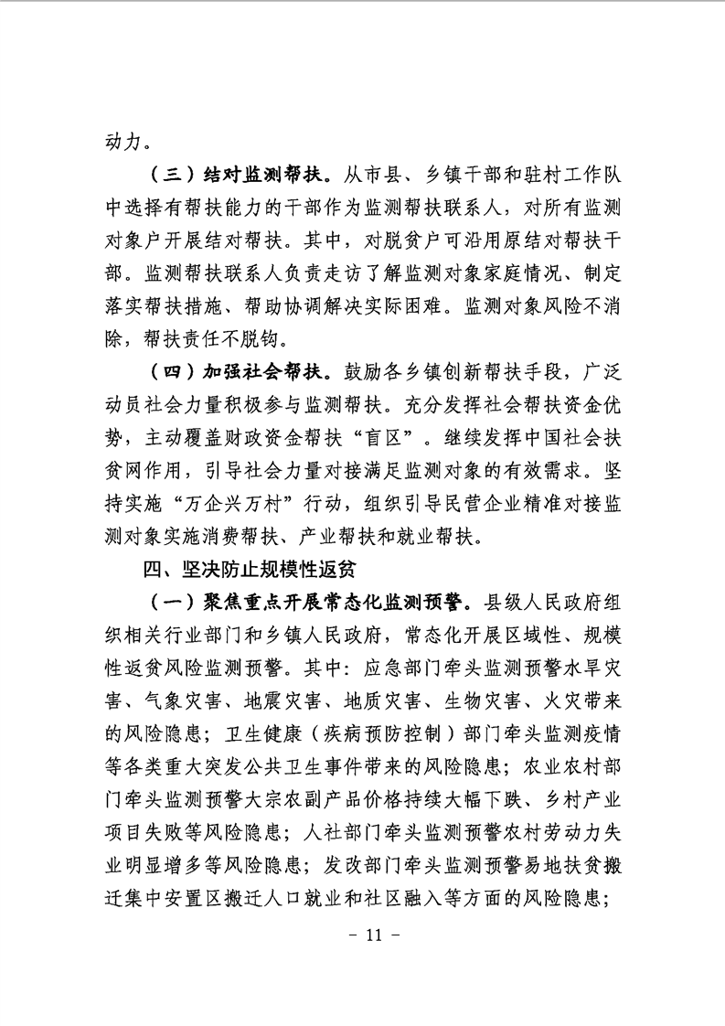 关于健全防止返贫动态监测和帮扶机制的实施意见