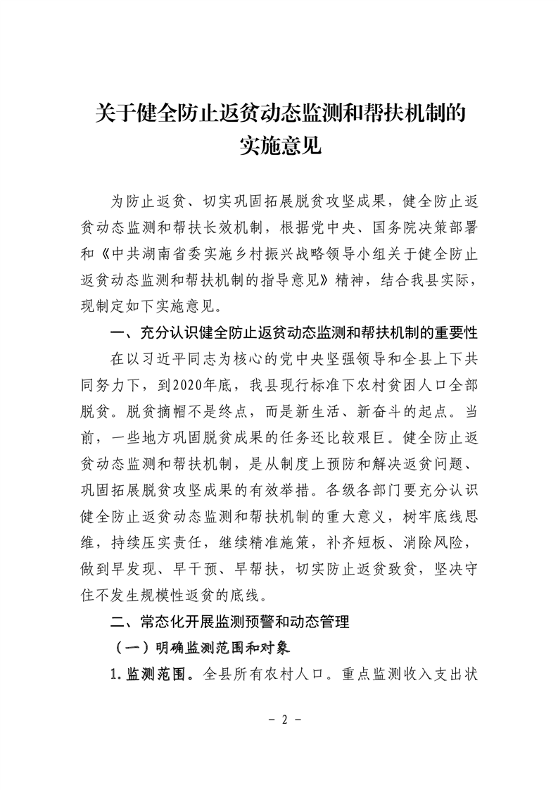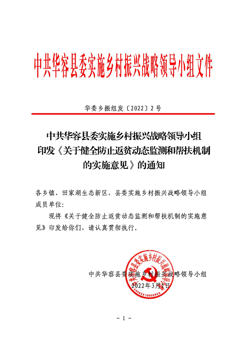 中共华容县委实施乡村振兴战略领导小组印发《关于健全防止返贫动态监测和帮扶机制的实施意见》的通知