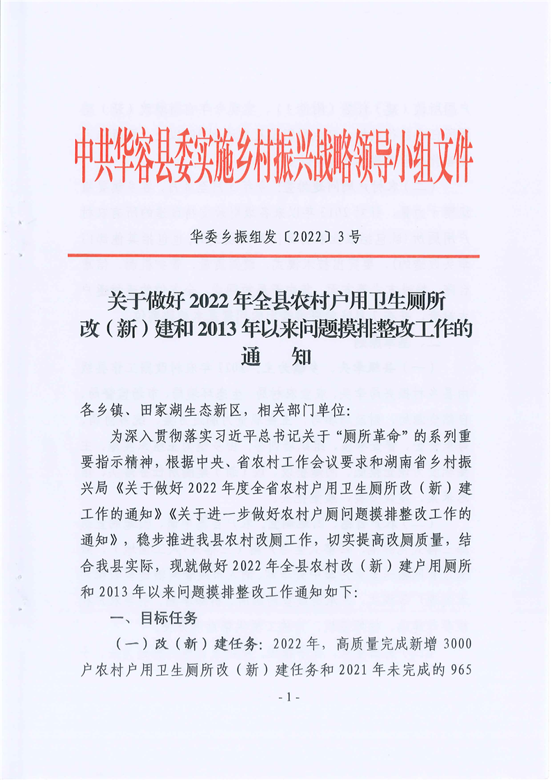 关于做好2022年全县农村户用卫生厕所改建和2013年以来问题摸排整改工作对通知