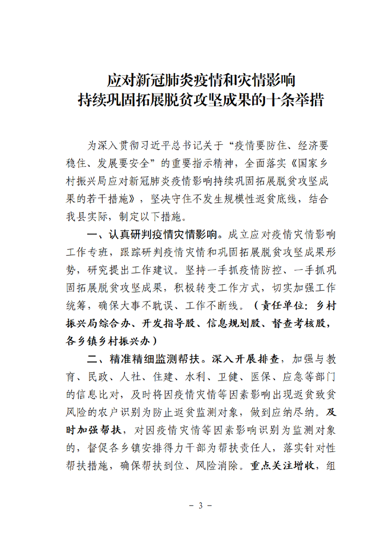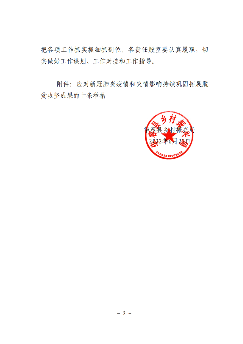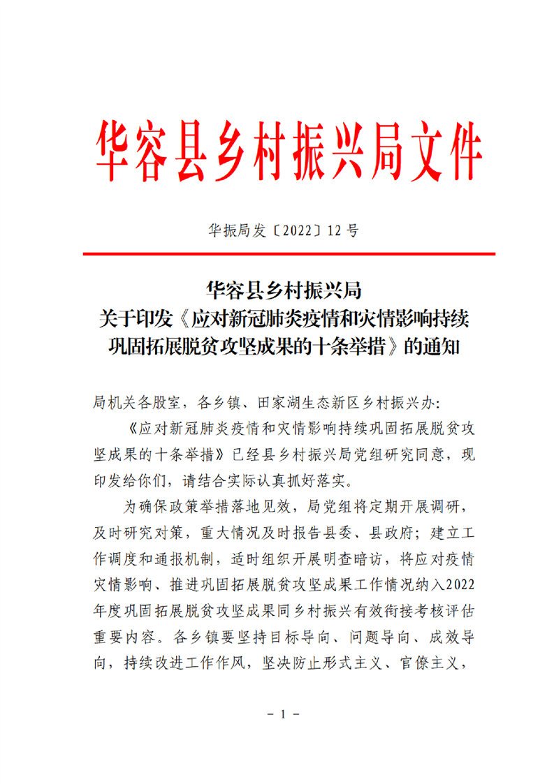 华容县乡村振兴局关于印发《应付新冠肺炎疫情和灾情影响持续巩固拓展脱贫攻坚成果的十条举措》的通知