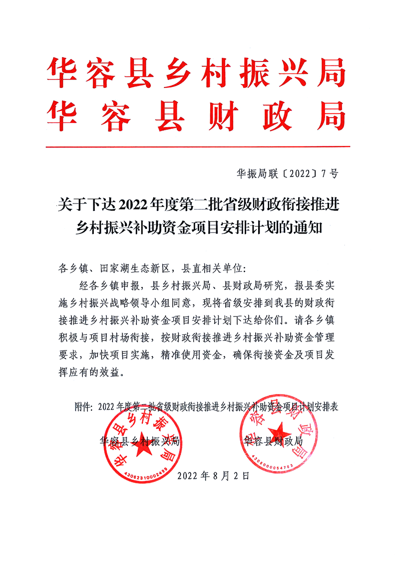 关于下达2022年度第二批省级财政衔接推进乡村振兴补助资金项目安排计划的通知