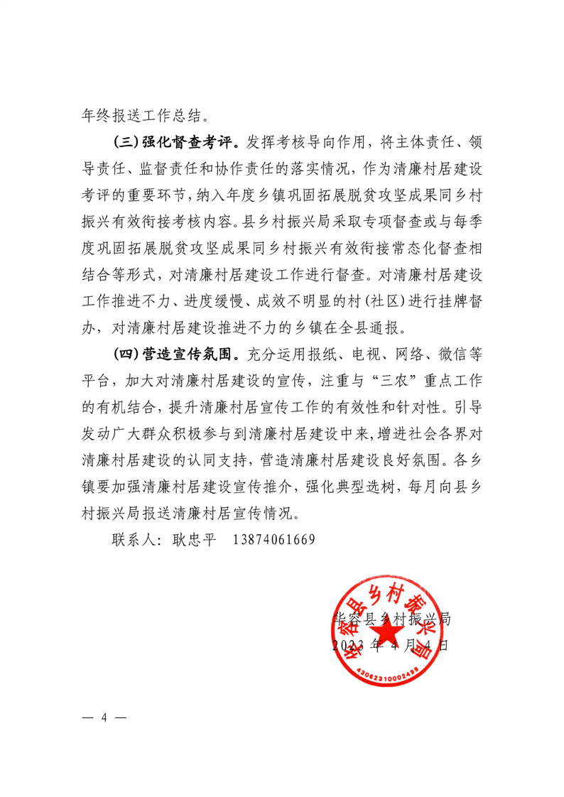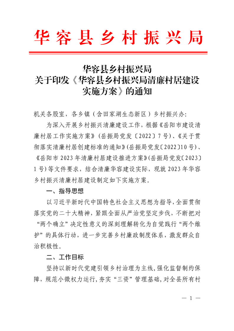 关于印发《华容县乡村振兴局清廉村居建设实施方案》的通知