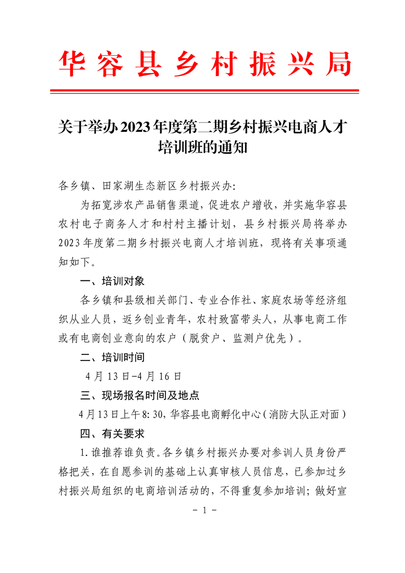 关于举办2023年度第二期乡村振兴电商人才技能培训班的通知