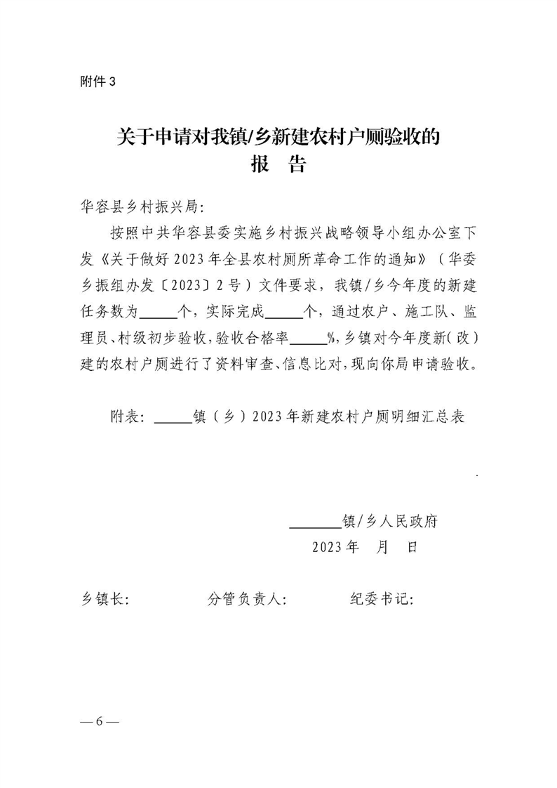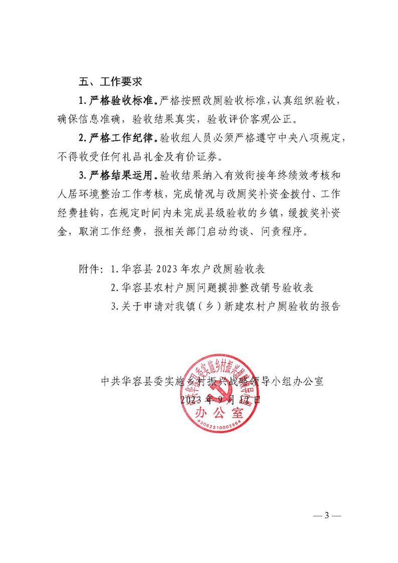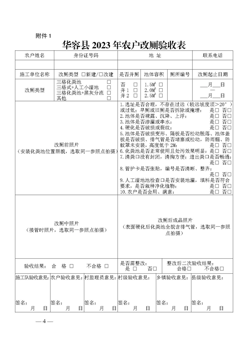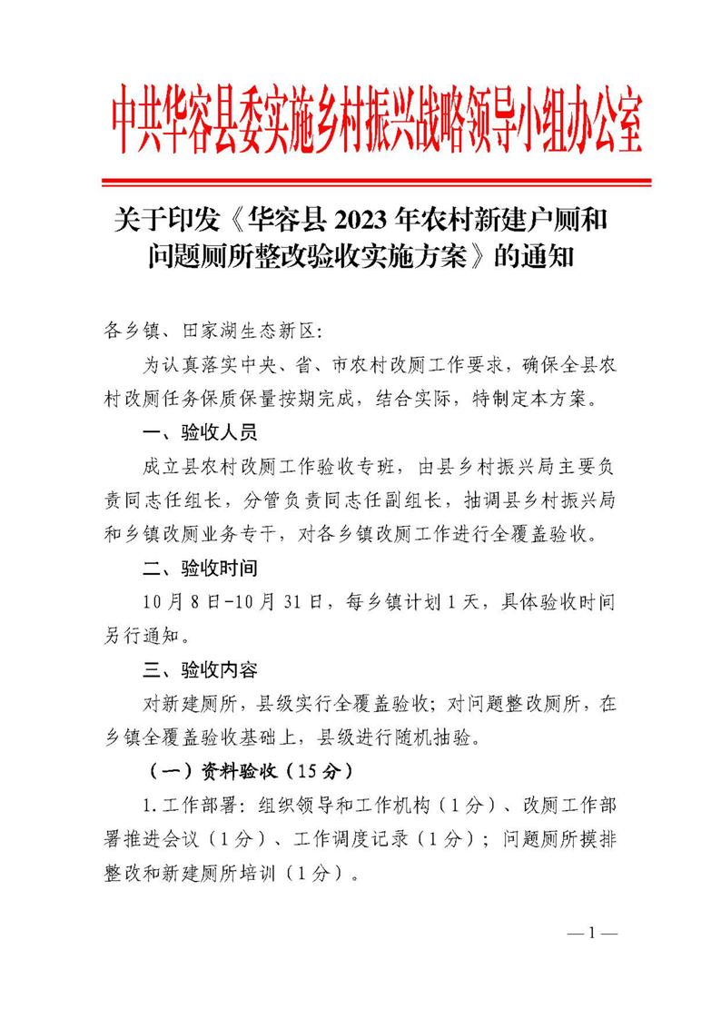 关于下发《华容县2023年农村新建户厕和问题厕所整改验收实施方案》的通知
