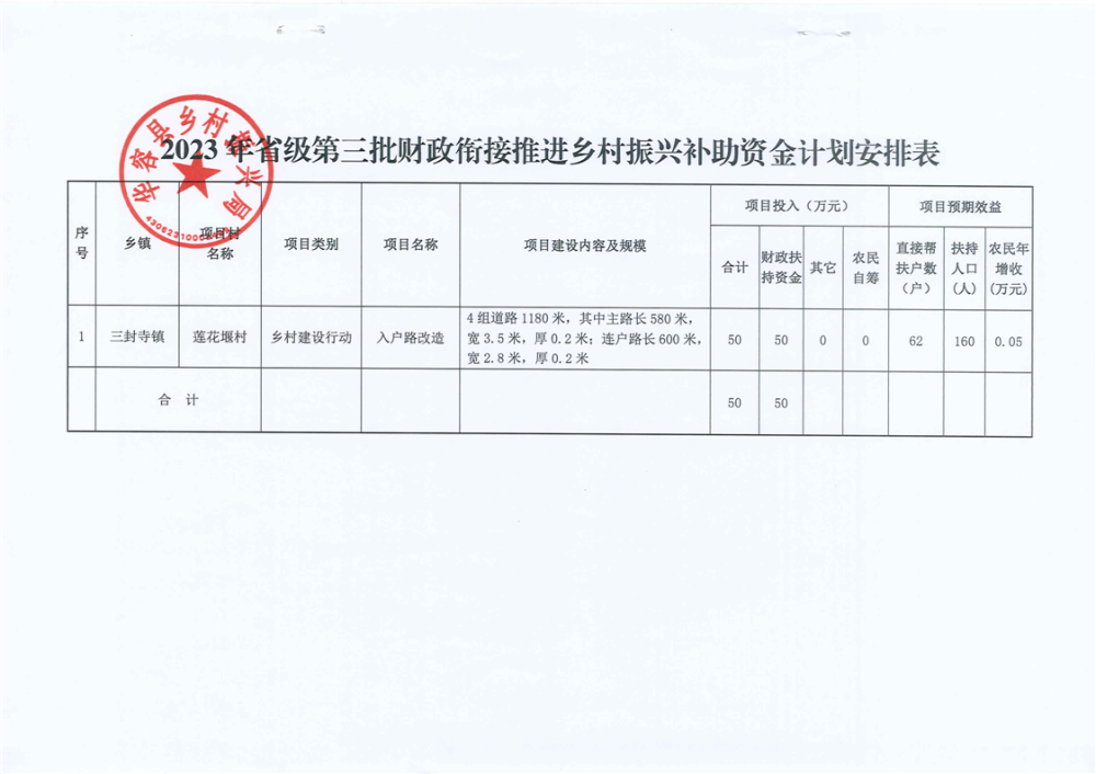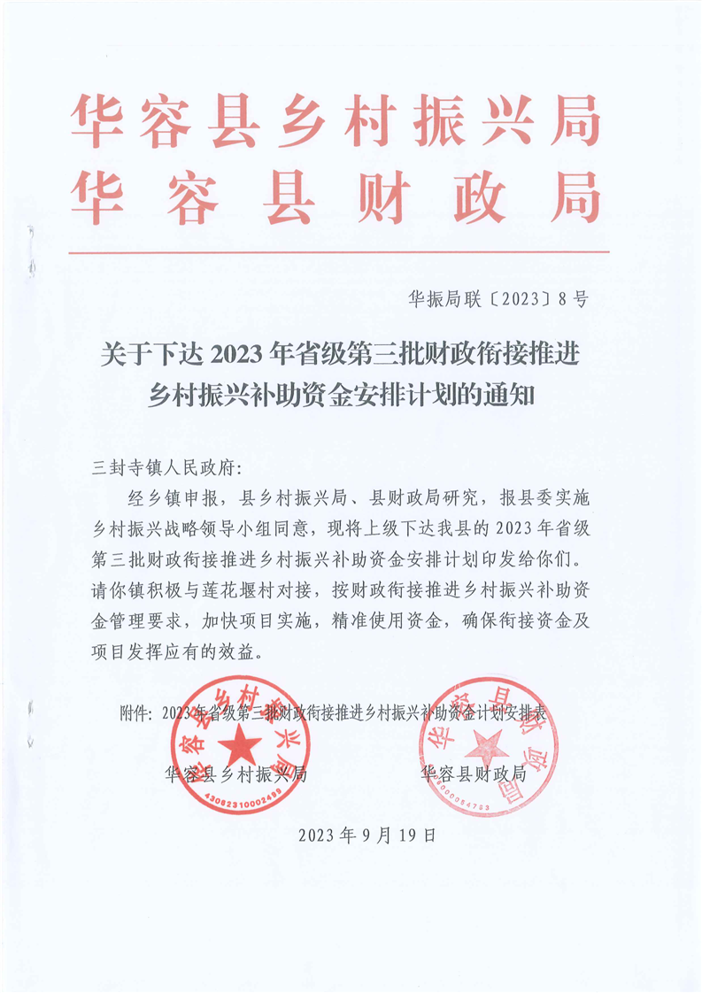 华振局联〔2023〕8号- 2023年省级第三批财政衔接推进乡村振兴补助资金计划安排表