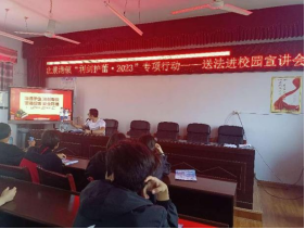 插旗中学 高扬所长讲课活动现场图 在乡镇志愿者们通过采取悬挂横幅标语、LED屏滚动宣传标语、张贴宣传海报、向群众发放“利剑护蕾”专项行动宣传手册等多途径宣传方式,让每一个家庭意识到未成年人保护的重要性,并耐心讲解让未成年人免受侵害的预防措施及注意事项,引导未成年人增强自我保护意识,将不法分子侵害未成年人倾向扼杀在萌芽状态。