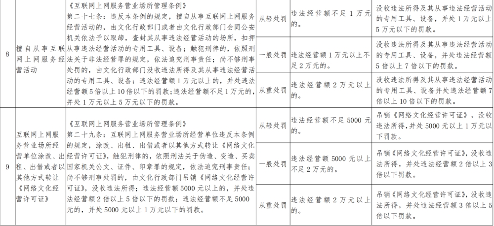 擅自从事互联网上网服务经营活动;互联网上网服务营业场所经营单位涂改、出租、出借或者以其他方式转让《网络文化经 营许可证》