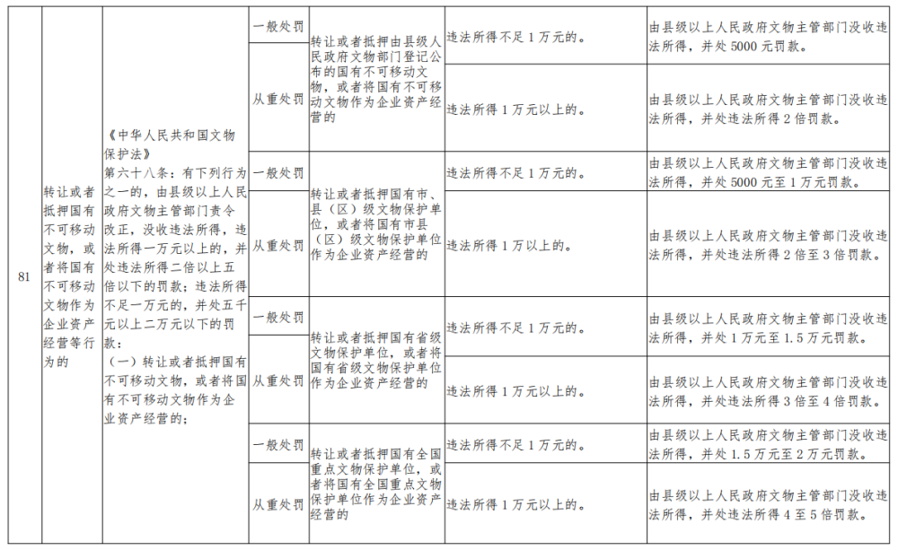 | 一级事项 | 行政处罚 | 二级事项 | 对转让或者抵押国有不可移动文物的行为进行处罚 |