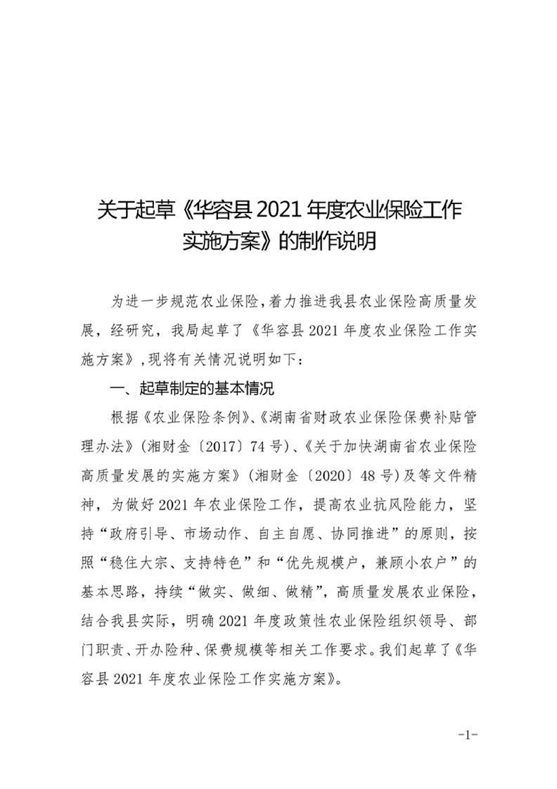 关于起草《华容县2021年度农业保险工作实施方案》的制作说明