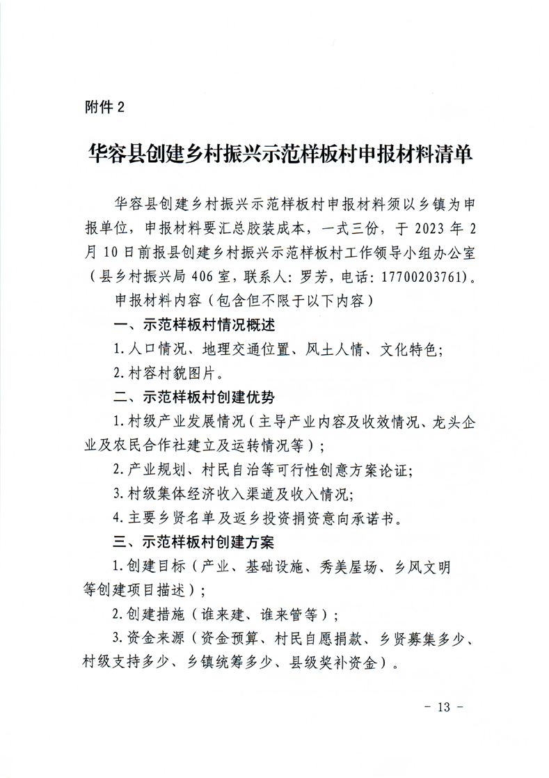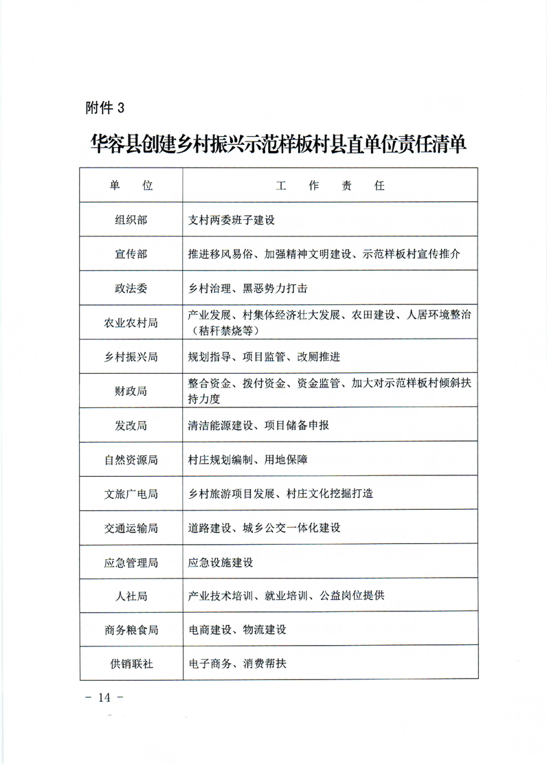 关于印发《华容县创建乡村振兴示范样板村实施方案》的通知