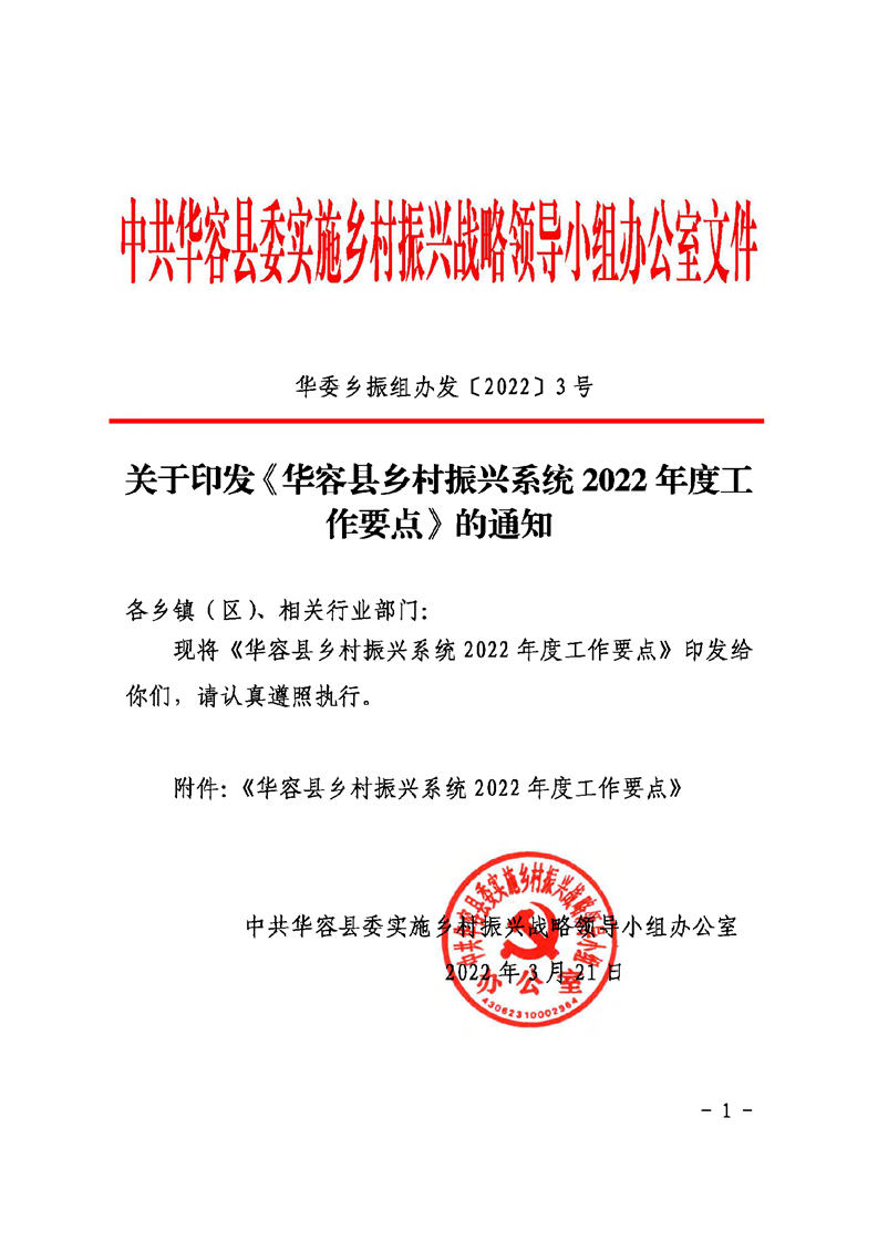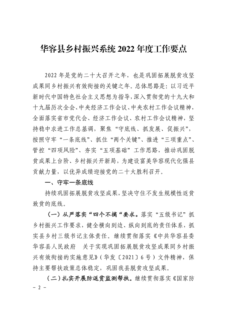 关于印发《华容县乡村振兴系统2022年度工作要点》的通知