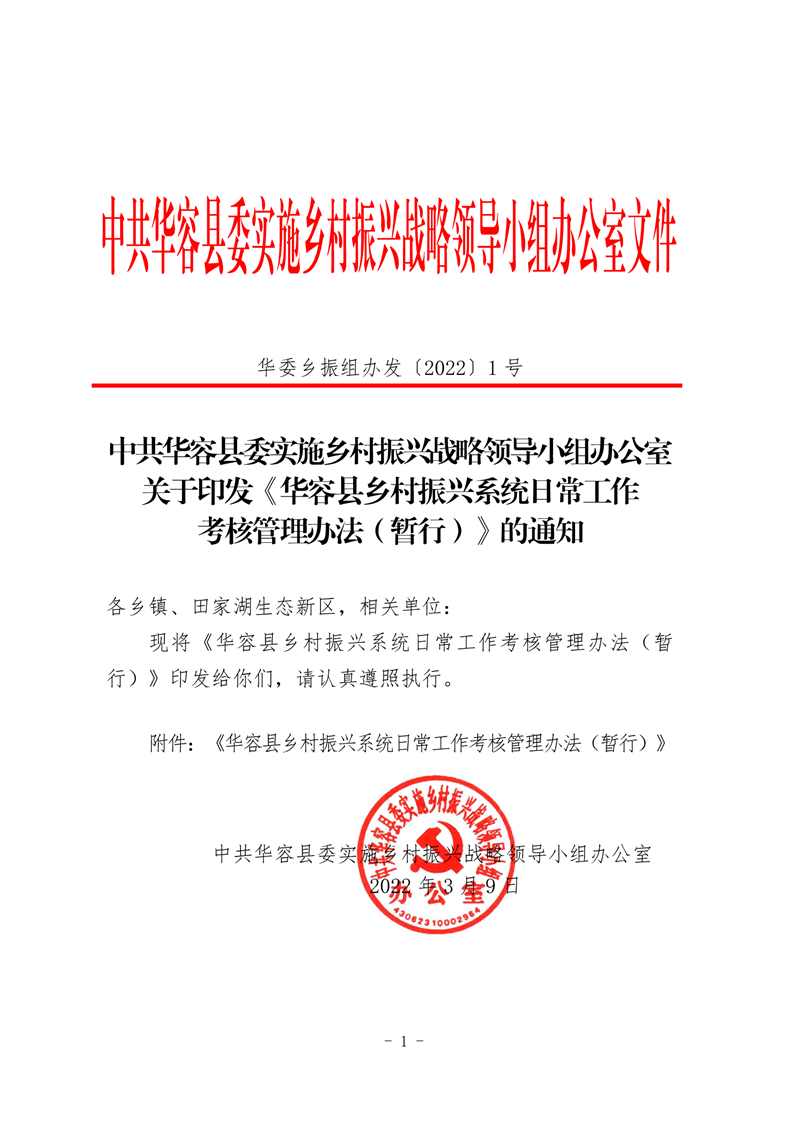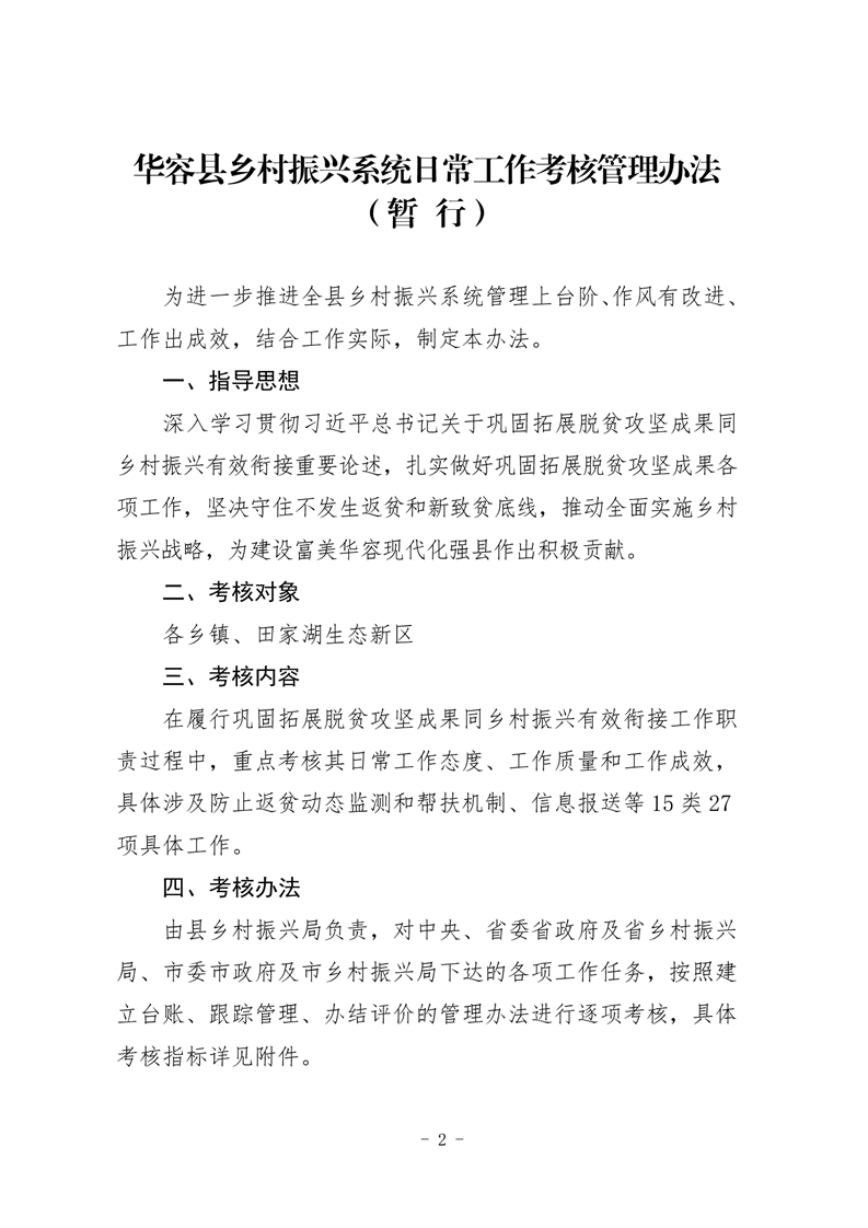 华容县乡村振兴系统日常工作考核管理办法(暂行)的通知