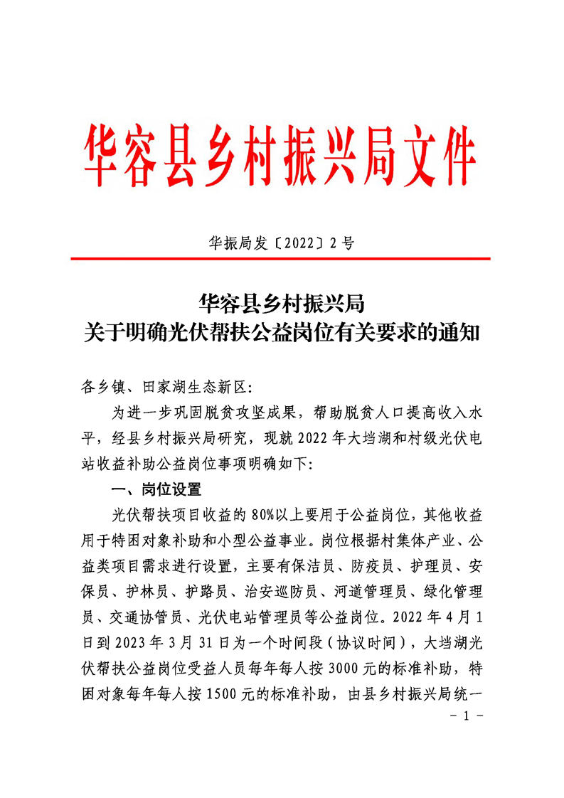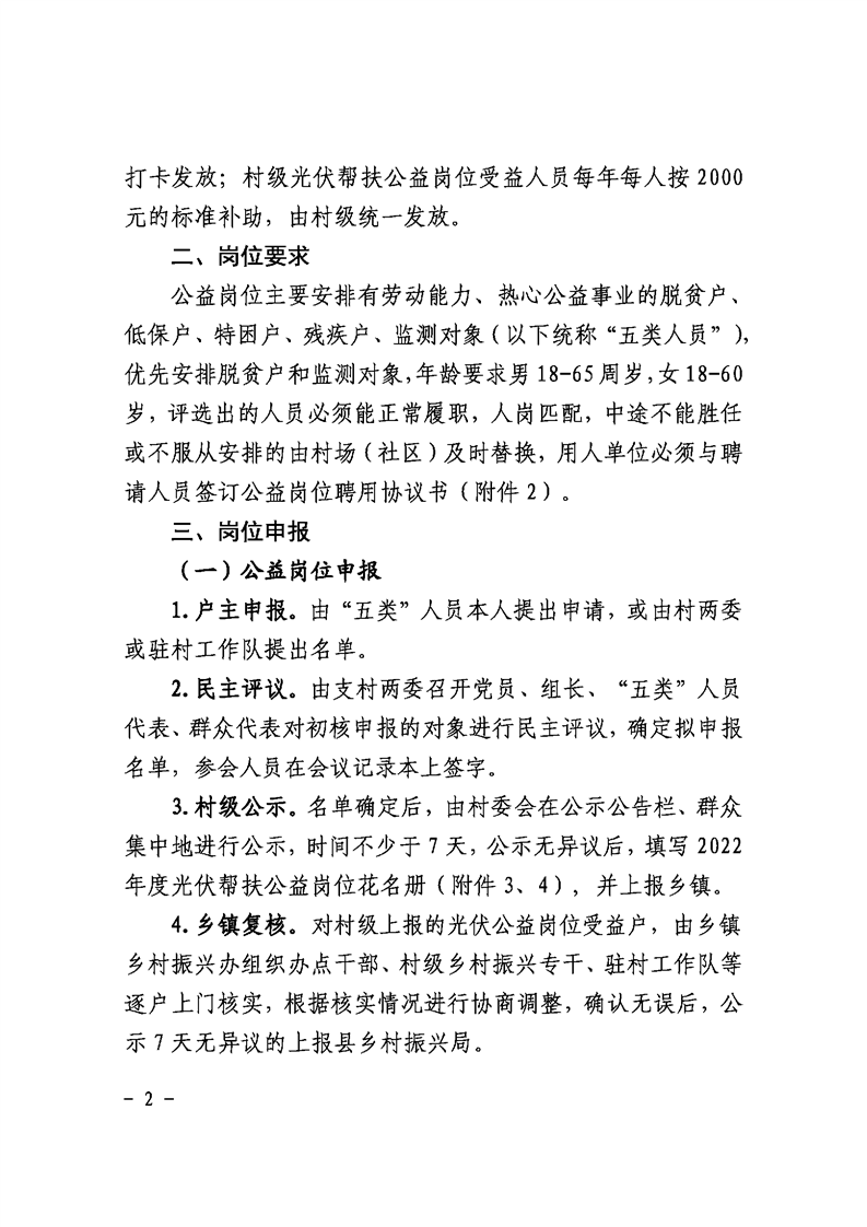 光伏帮扶公益岗位设置有关要求的通知