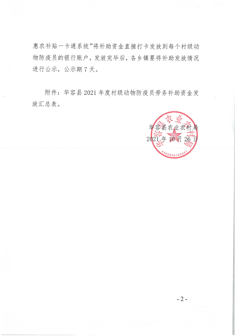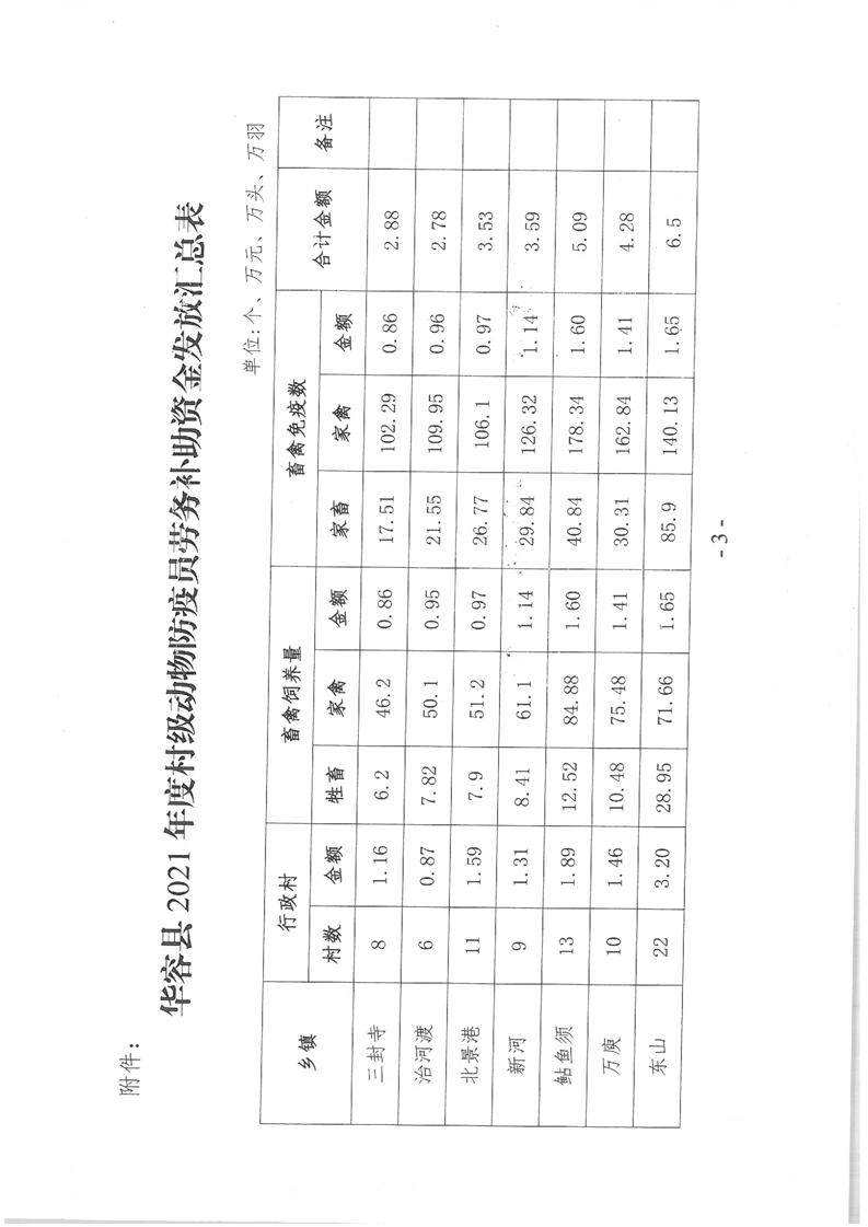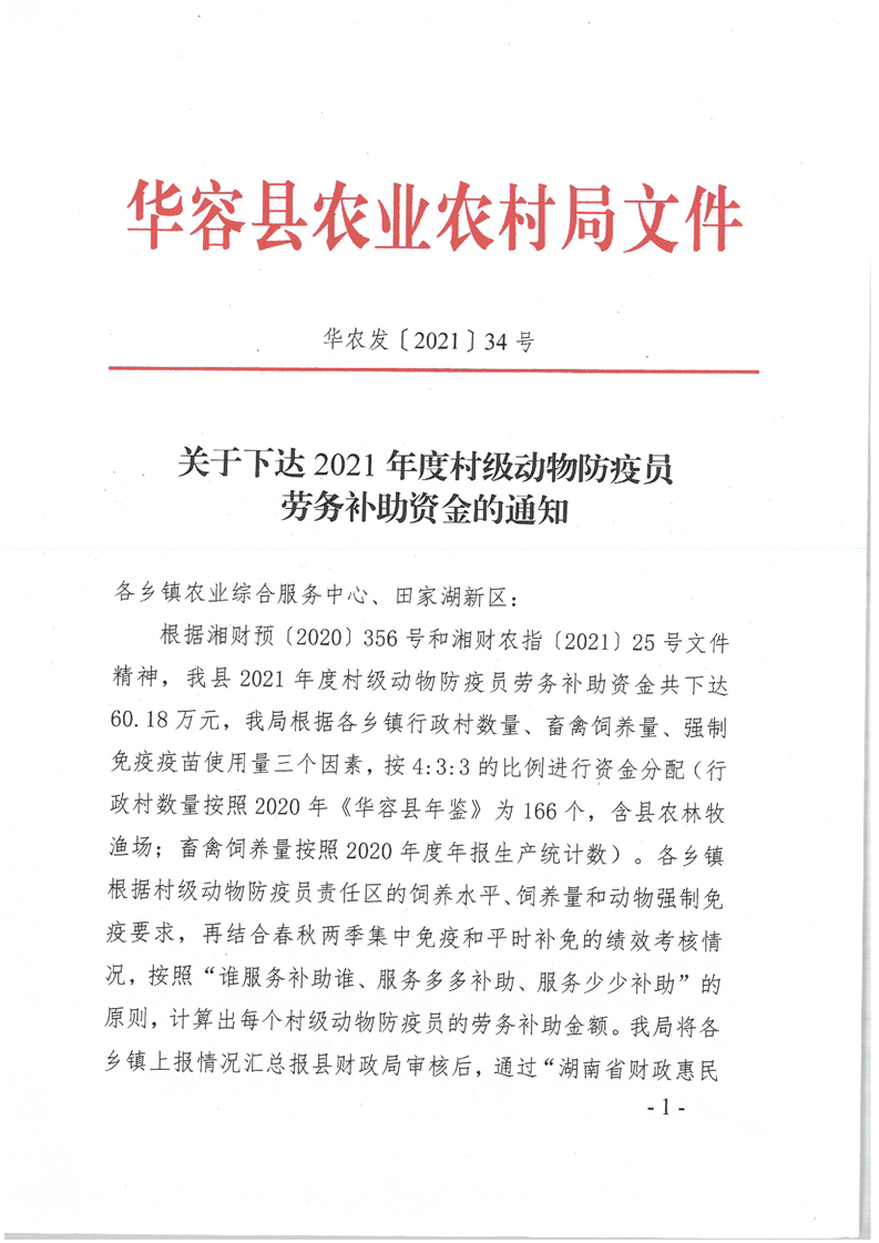 关于下达2021年度村级动物防疫员劳务补助资金的通知
