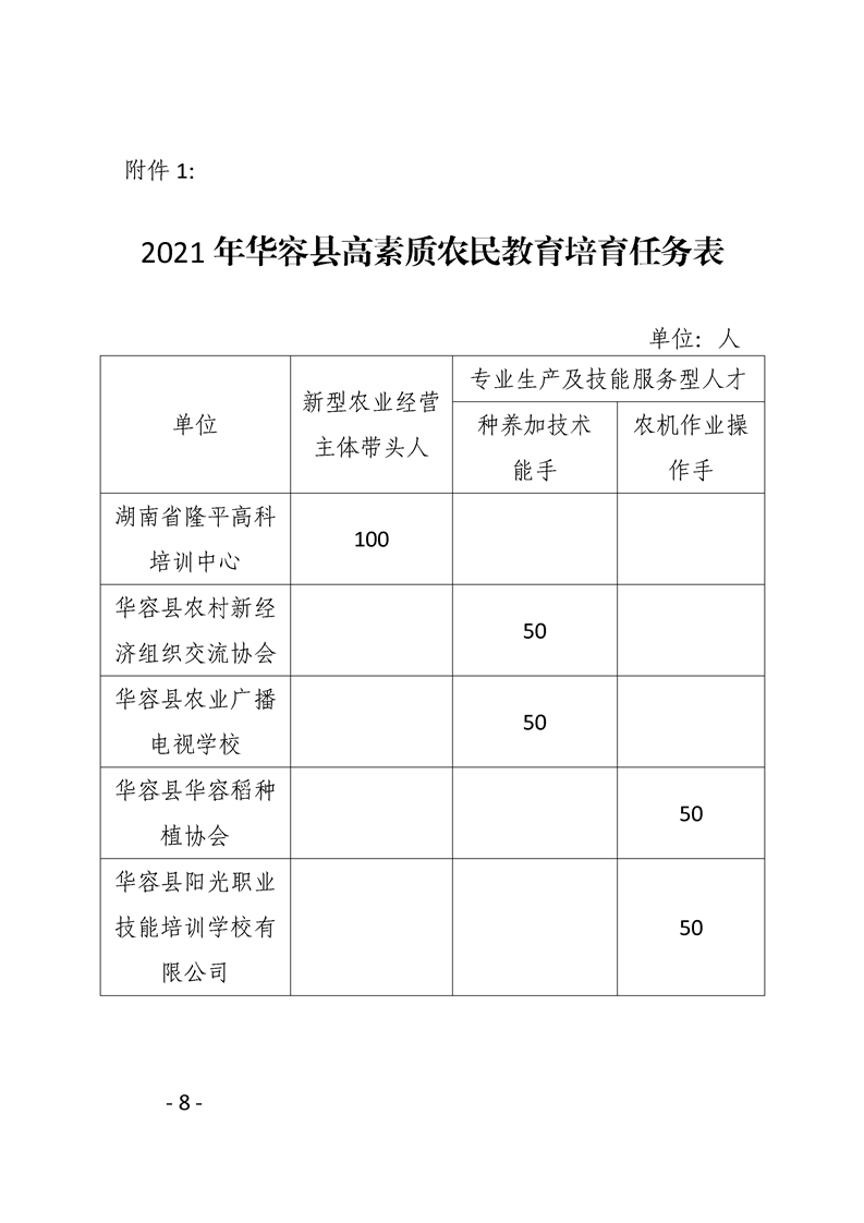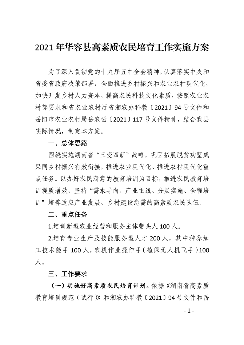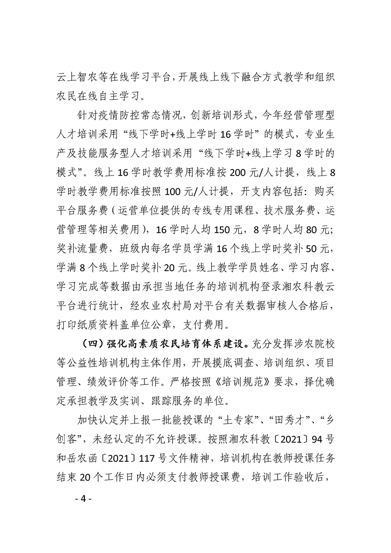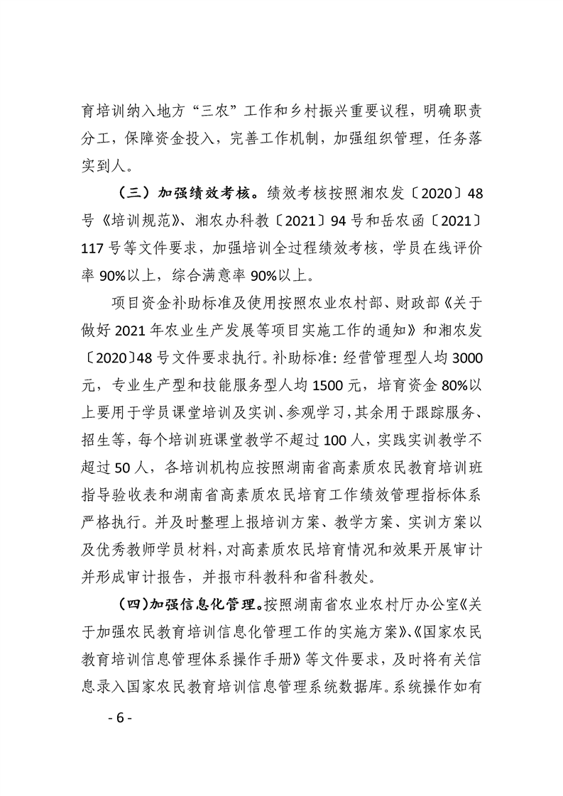 | 公开依据 | 《中共中央办公厅、国务院办公厅关于引导农村土地经营权有序流转发展农业适度规模经营的意见》 《国务院办公厅关于支持返乡下乡人员创业创新促进农村一二三产业融合发展的意见》(国办发(2016)84号) 《2021年湖南省高素质农民教育培训工作实施方案》(湘农办科教〔2021〕94号) 《2021年岳阳市高素质农民教育培训工作实施方案》(岳农函〔2021〕117号) | ||
