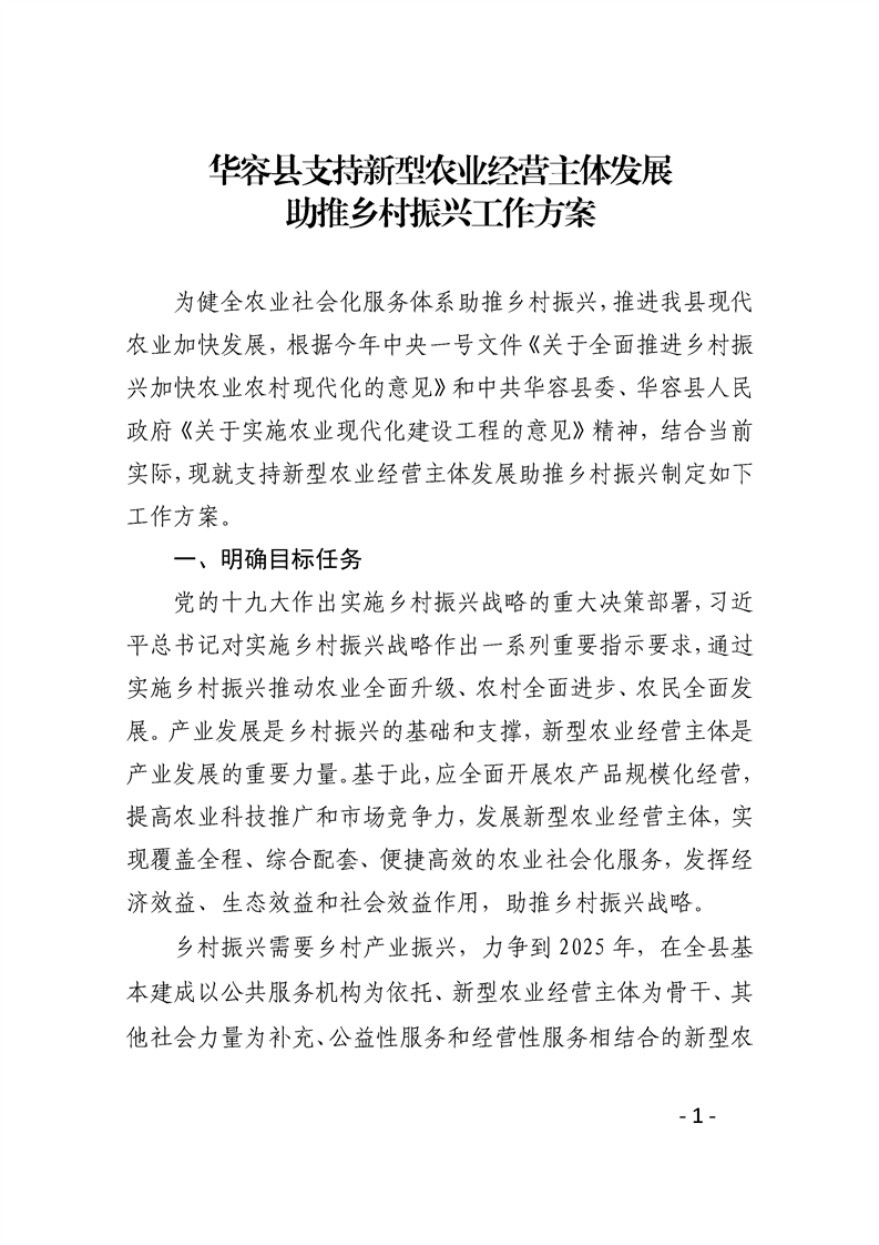 华容县支持新型农业经营主体发展 助推乡村振兴工作方案