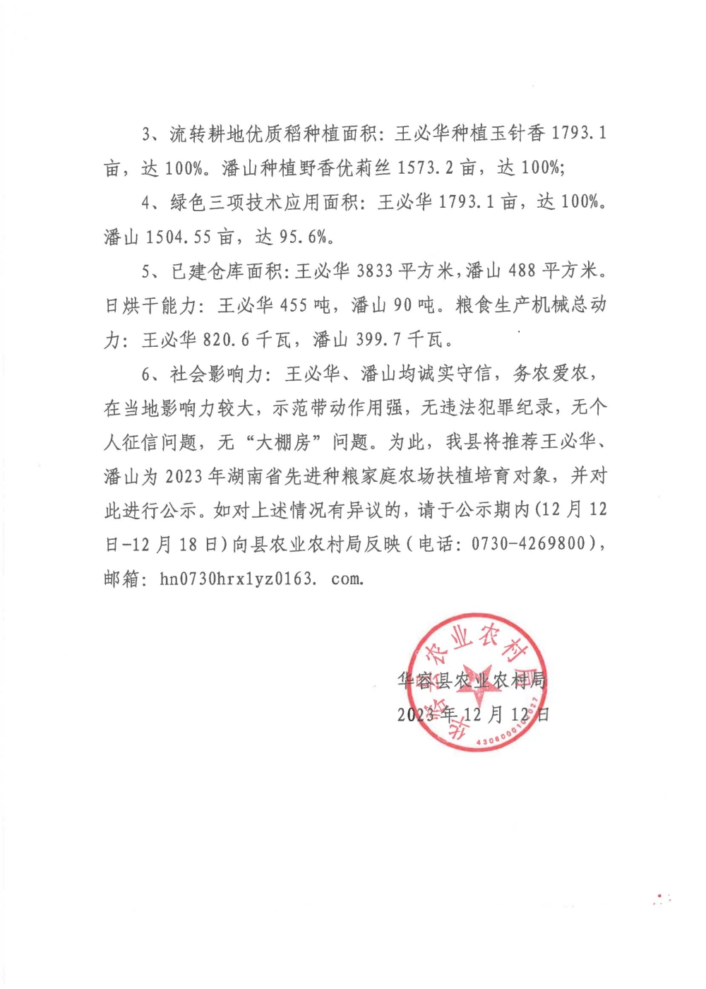 关于推荐2023年全省先进种粮家庭农场扶植培育对象的公示