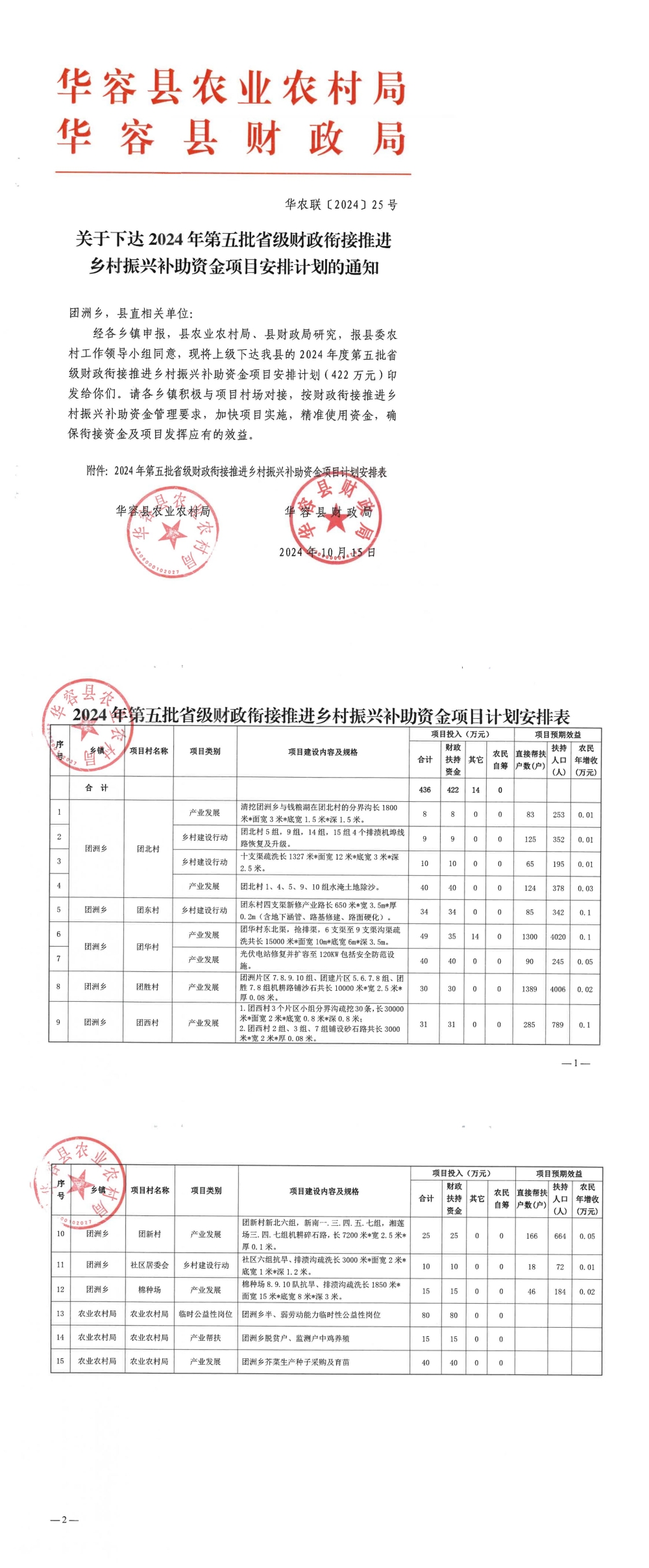 华农联(2024)25号-关于下达2024年第五批省级财政衔接推进乡村振兴补助资金项目安排计划的通知-422W