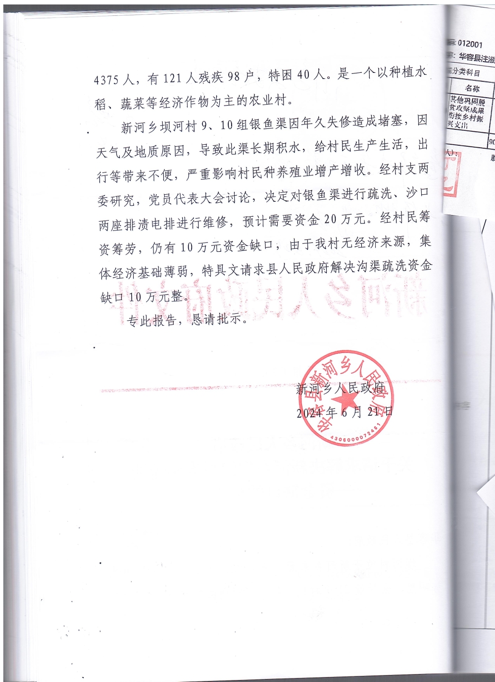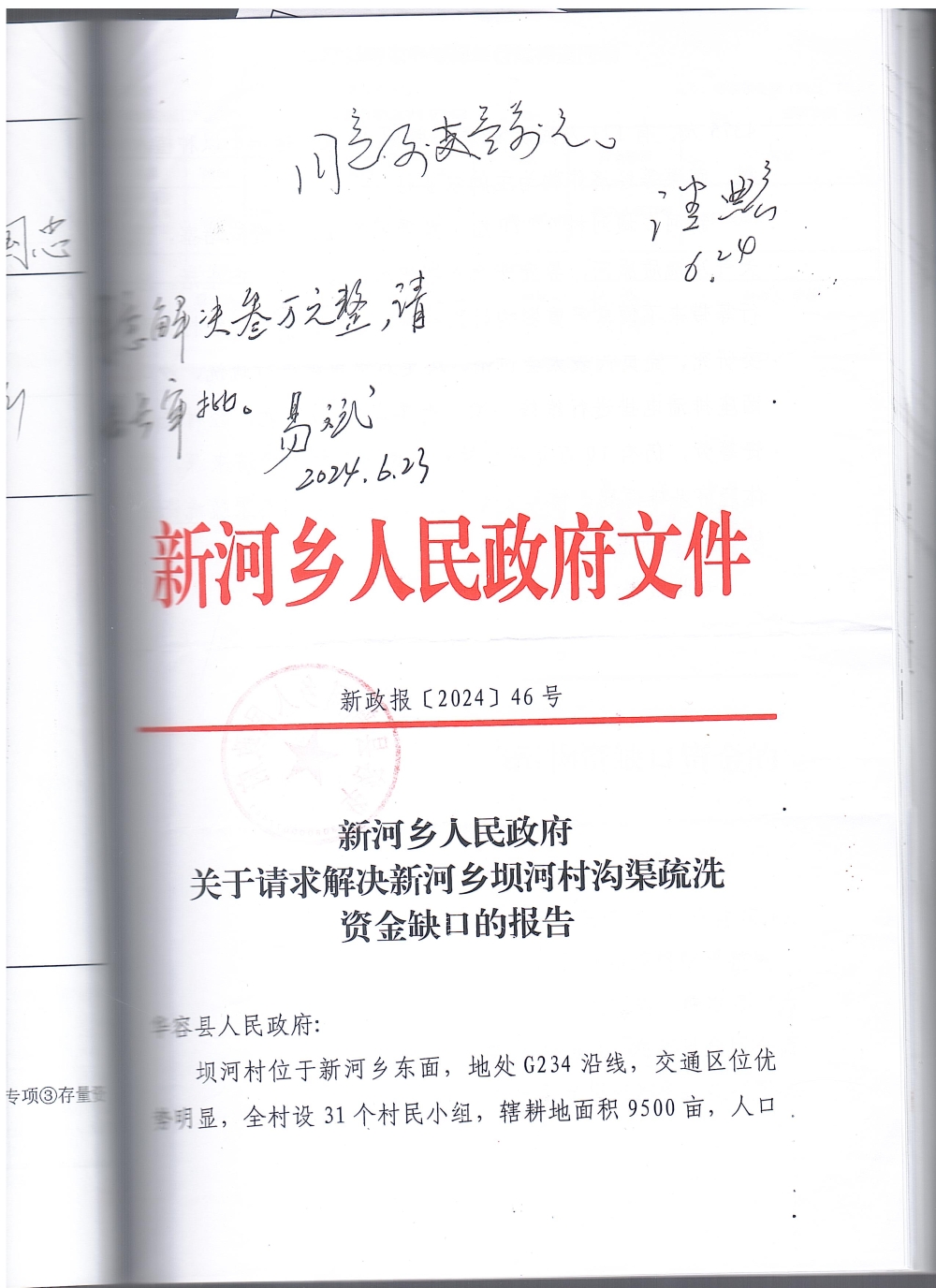 2024年新河乡坝河村 9、10组银鱼渠疏洗(3万元)