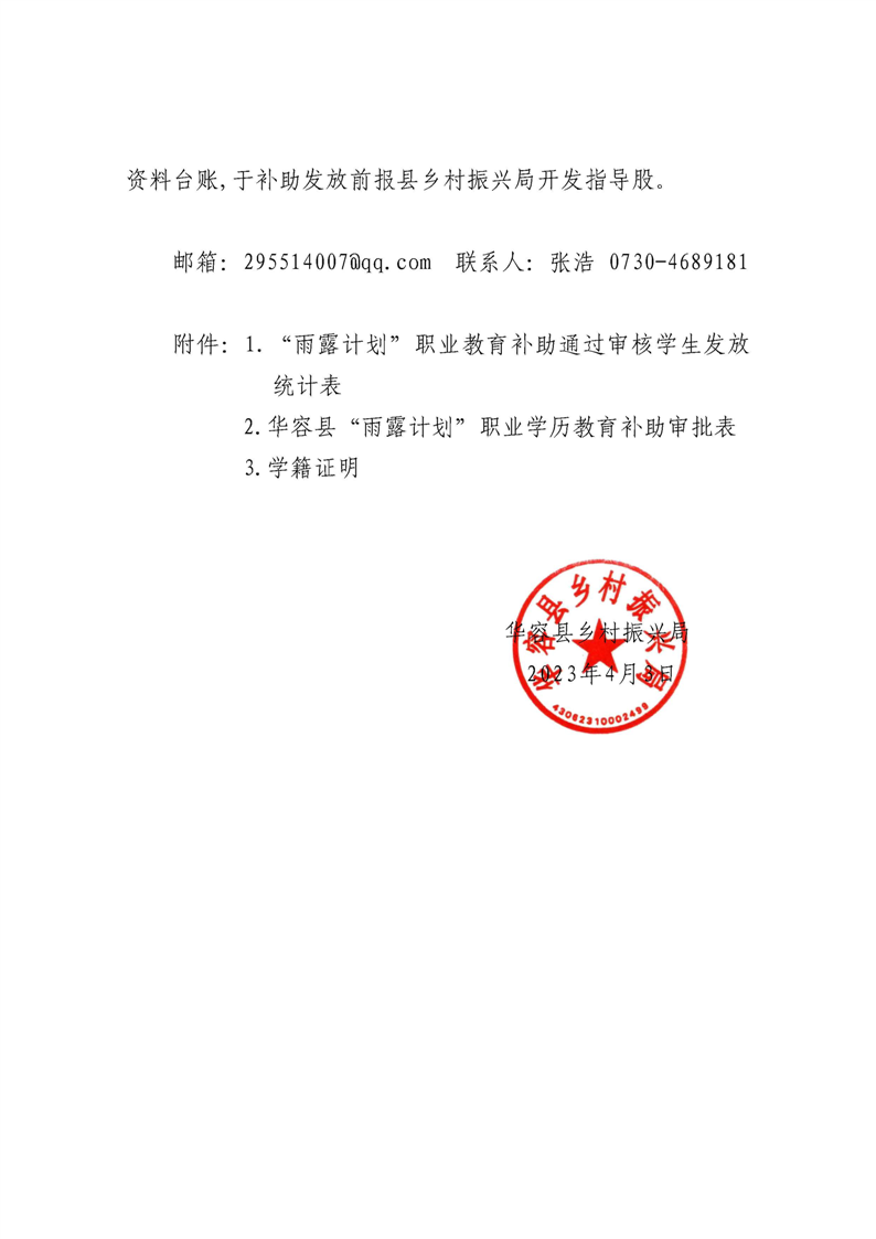 华振局发〔2023〕7号-华关于做好2023年“雨露计划”职业学历教育补助工作的通知