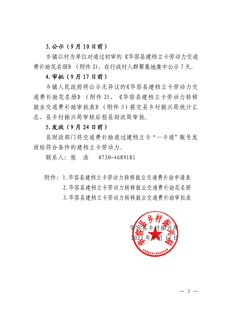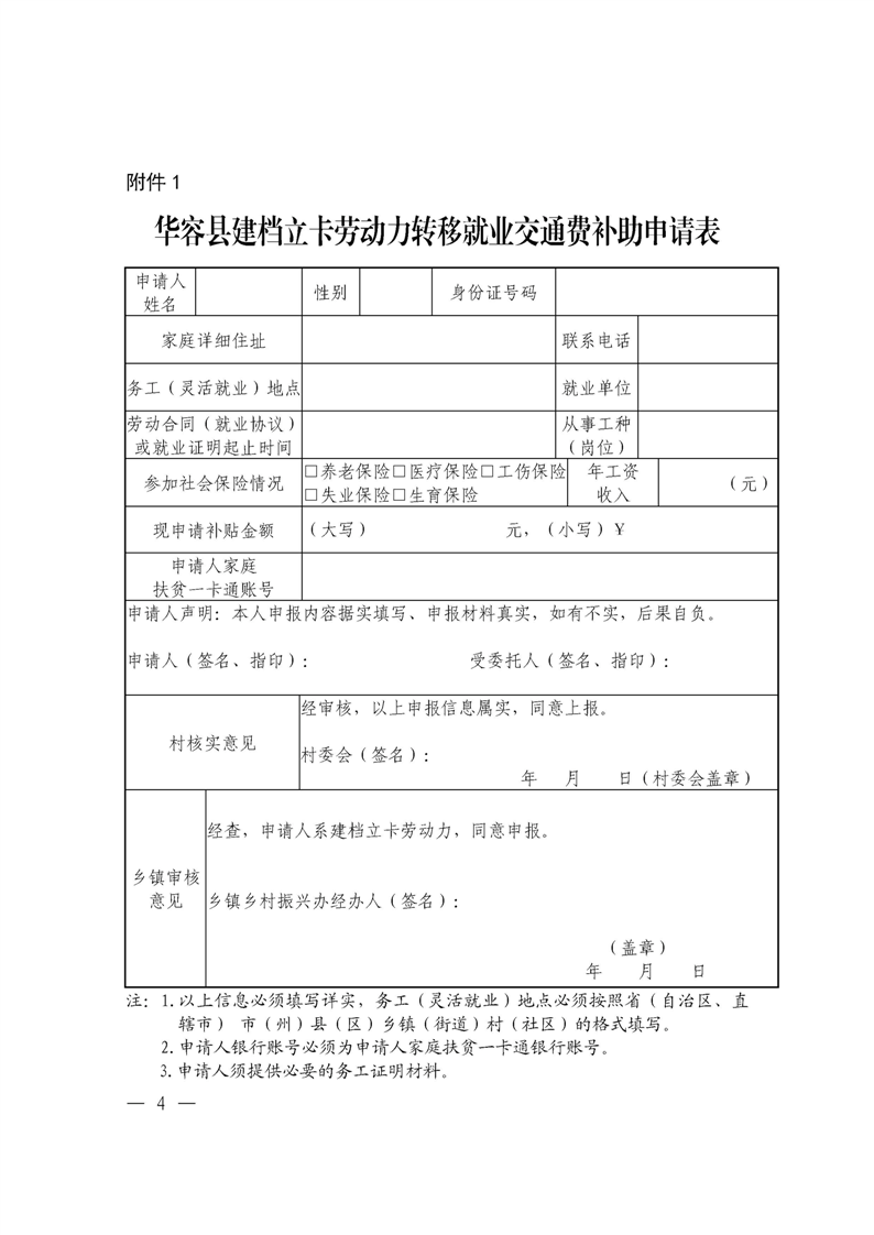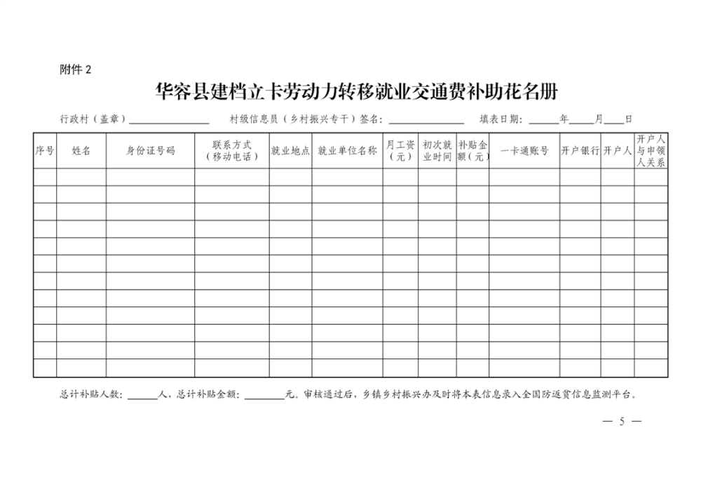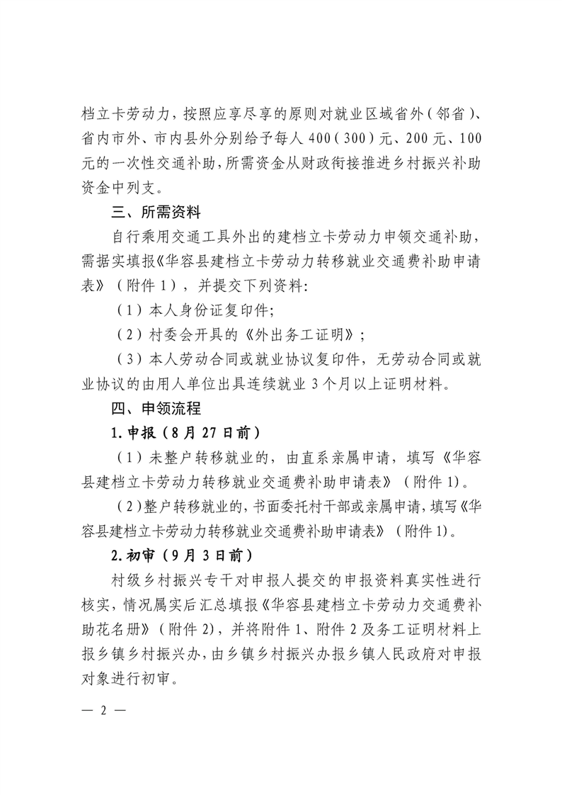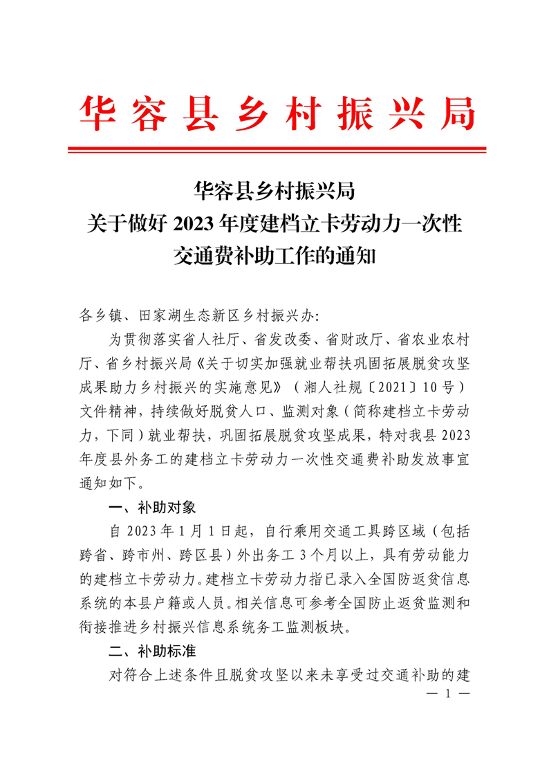 关于做好2023年华容县建档立卡劳动力一次性交通费补助工作的通知