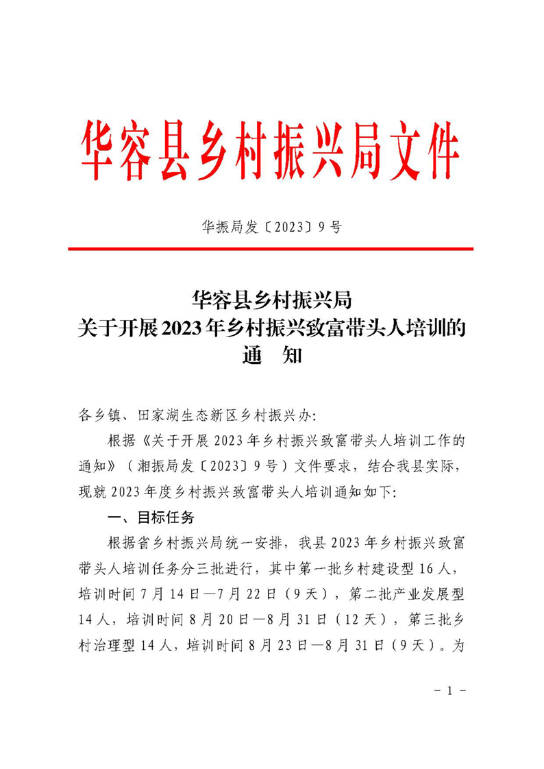 华振局发〔2023〕9号-关于开展2023年乡村振兴致富带头人培训的通知