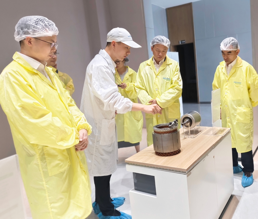 在江苏某公司董事长陈玉辉的陪同下,考察组实地走访了该公司,公司占地面积89亩,产品主要配套于伺服电机、驱动控制器、工业机器人、气动工具、汽车变速箱、新能源汽车产业。座谈会上,周鹏详细介绍了华容汇川配套产业园建设进展情况及优惠政策,并邀请该公司在华容打造全工艺流程,做成汇川配套标杆型企业。陈玉辉表示将近期赴华容征地建厂。