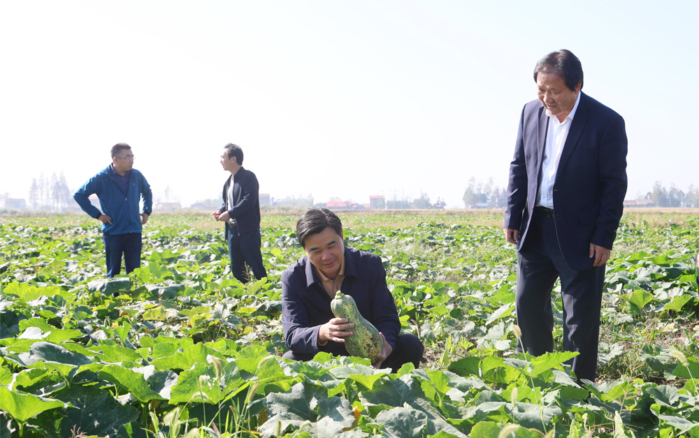与会人员现场先后考察了团北村南瓜和芥菜种植基地、团胜村油菜种植基地、团西村晚稻种植基地,种植基地呈现出生机勃勃、硕果累累的景象令与会人员点赞。省评议专家组对团洲垸团西村晚稻进行了现场测产,经过除杂、称重、测水分等程序,三丘田平均亩产401.3公斤干谷,获得喜人成果,这是洪水过后数月,团洲垸迎来的第一场丰收。此外,抢种的南瓜长势良好,油菜出苗见绿,快菜已经上市,农家菜园一片绿意盎然。