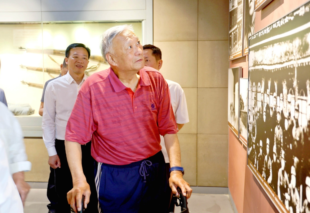 来到何长工同志纪念馆,在庄严肃穆的何长工同志塑像前,何光暐与夫人徐中敏敬献花篮,全体人员肃立三鞠躬,深切表达对革命先辈的追思。随后,在讲解员引导下,大家缓步参观“壮志凌云”“功勋卓著”“培育精英”等主题展厅。何长工同志的手稿、作战地图等珍贵文物,生动再现了革命先驱的奋斗历程,考察团成员驻足凝视、交流感悟。在何长工同志生平事迹展板前,何光暐深情追忆父亲战争年代的峥嵘岁月,并合影留念。