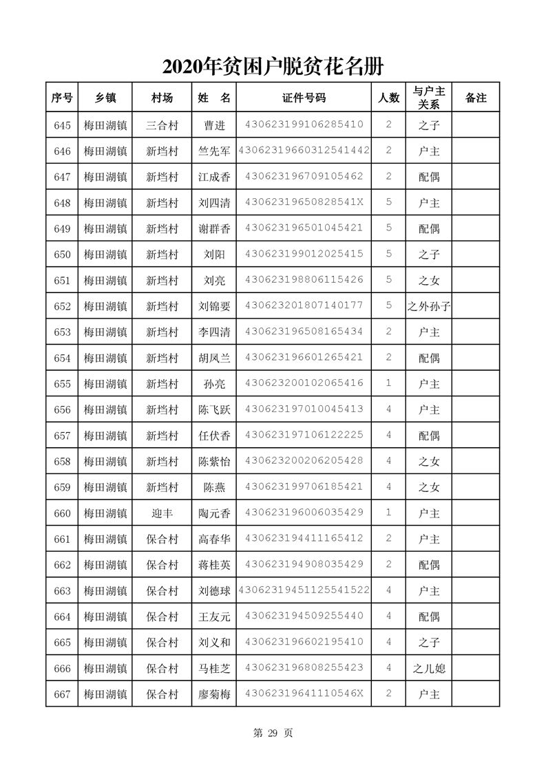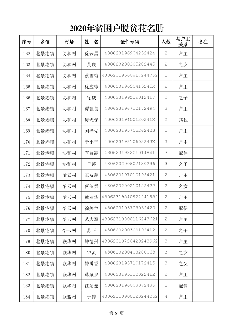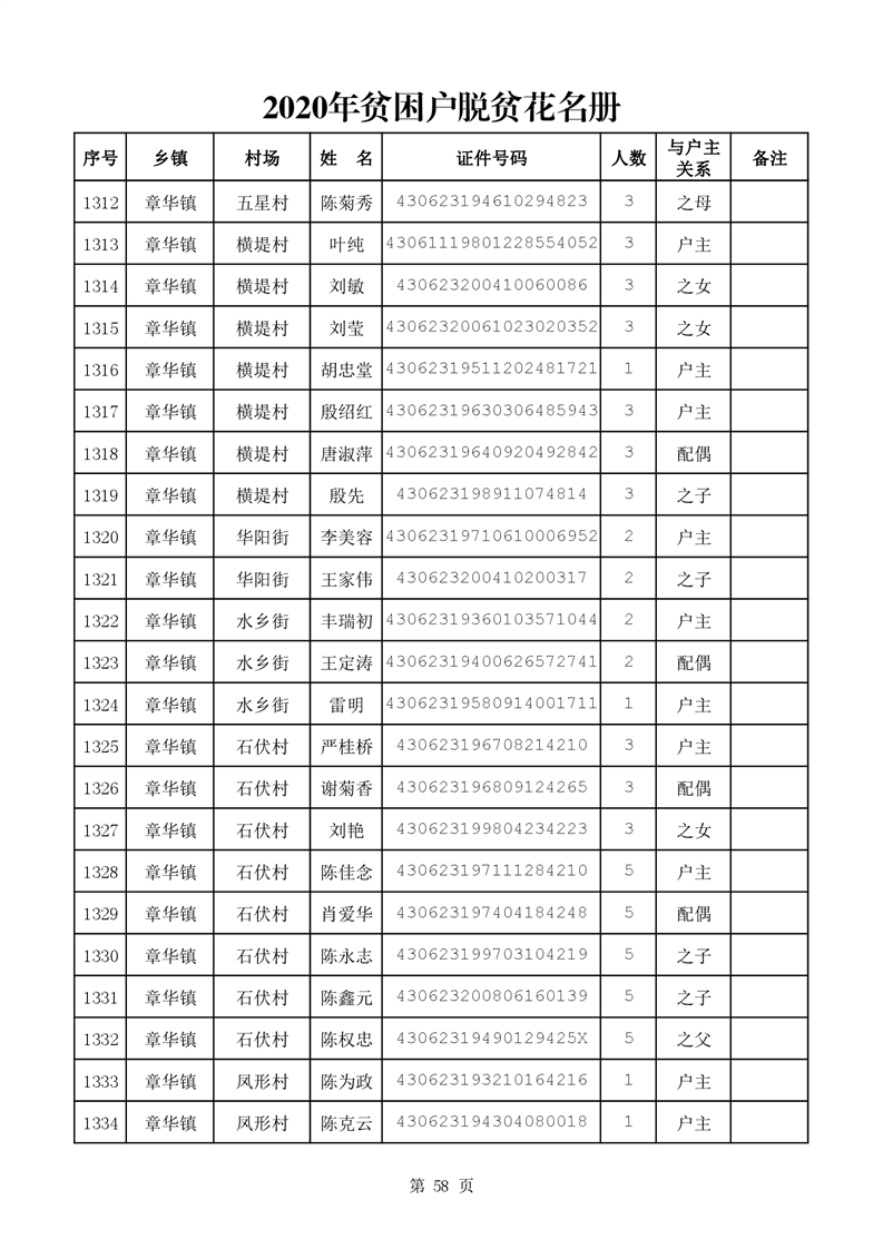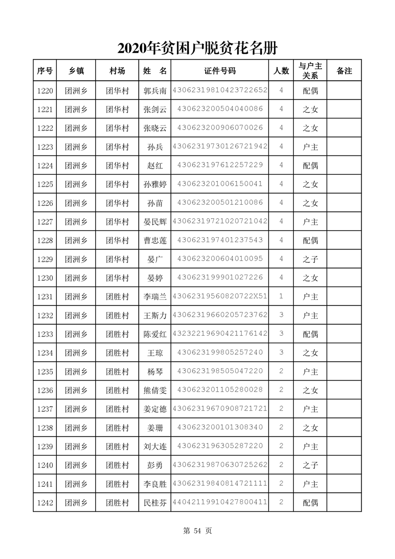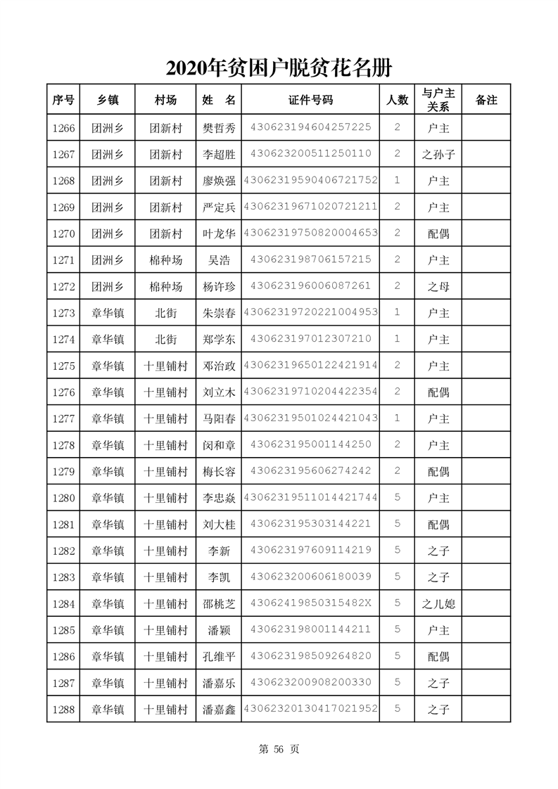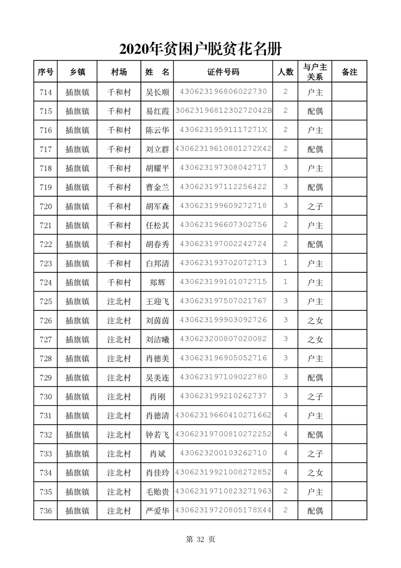 华容县人民政府关于2020年度建档立卡贫困户脱贫的公告