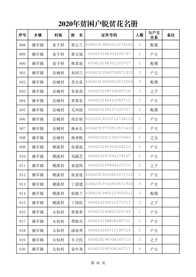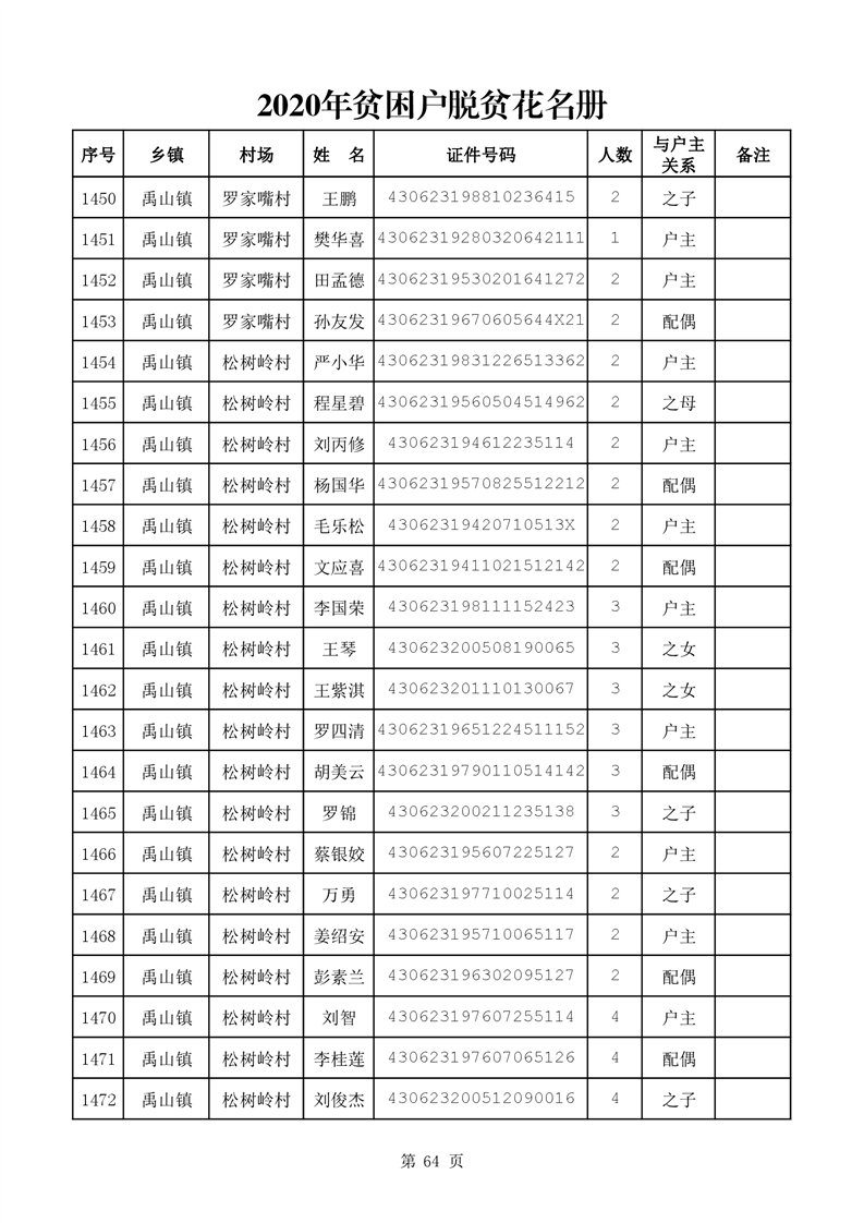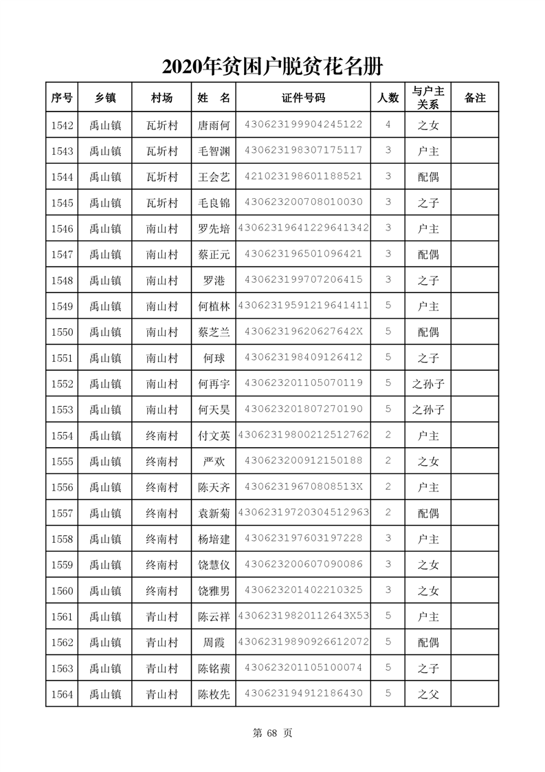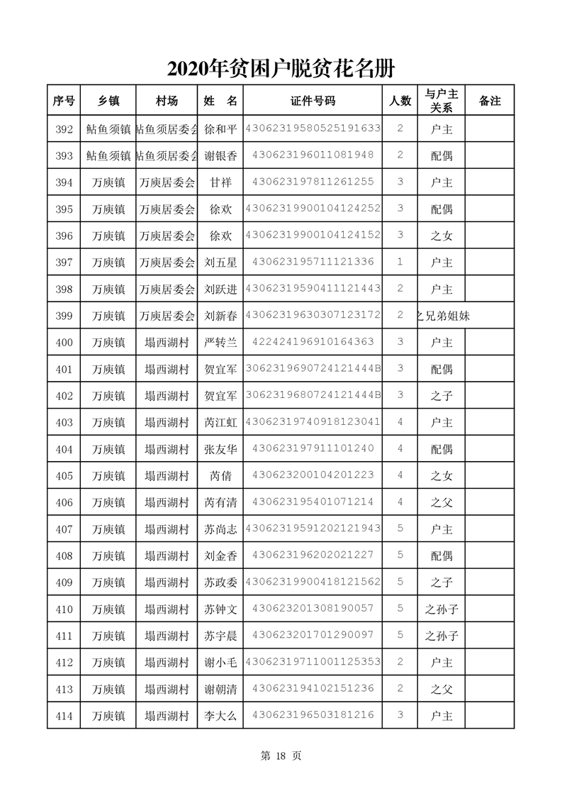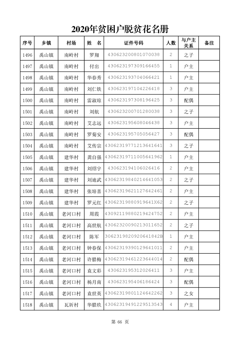 华容县人民政府关于2020年度建档立卡贫困户脱贫的公告