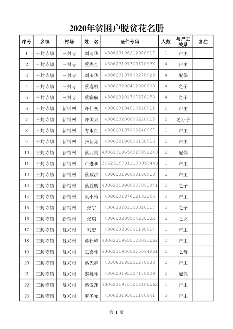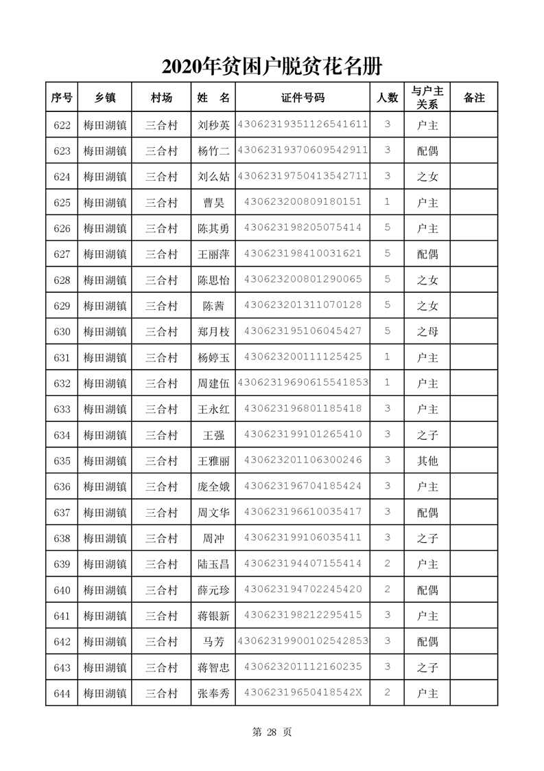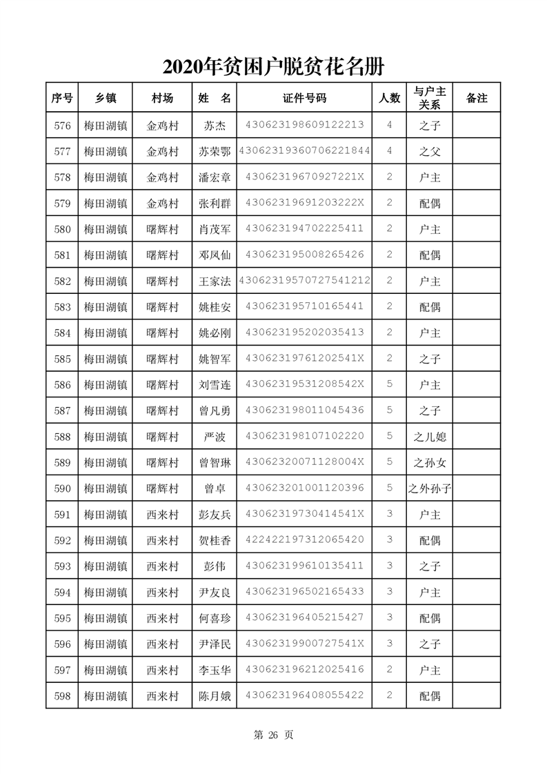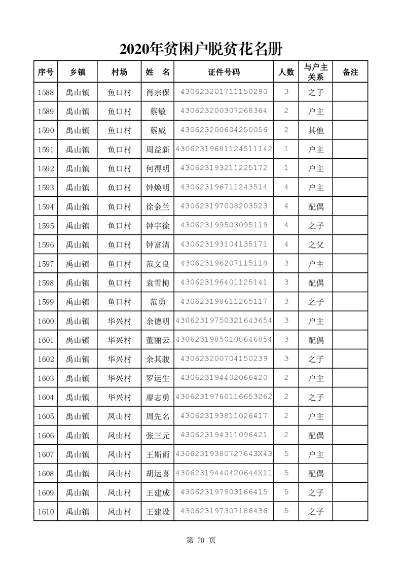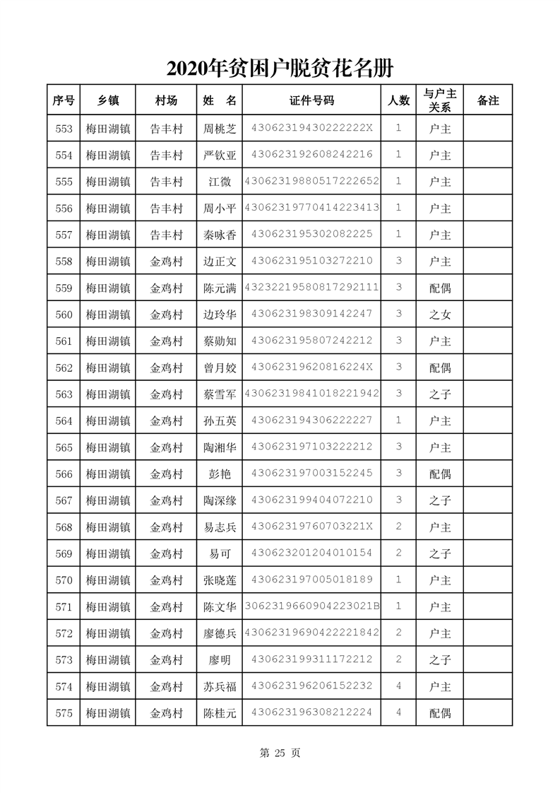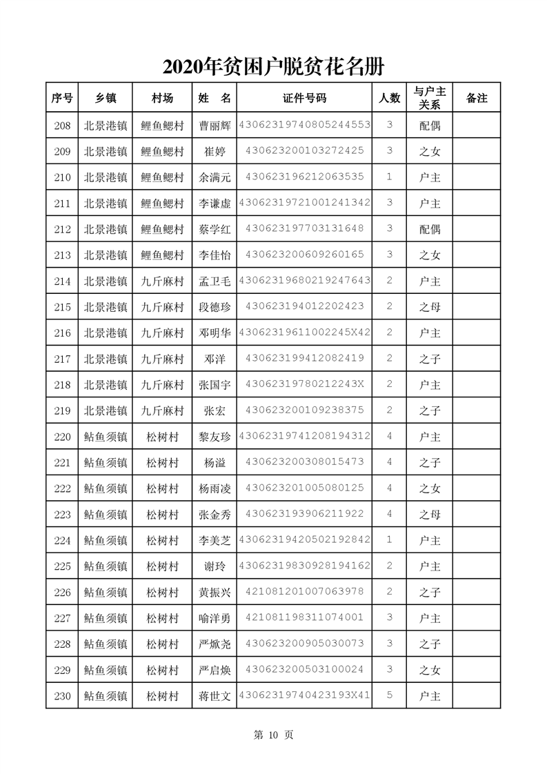 华容县人民政府关于2020年度建档立卡贫困户脱贫的公告