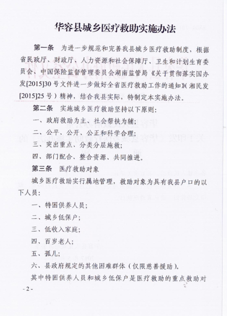 华容县城乡医疗救助实施办法