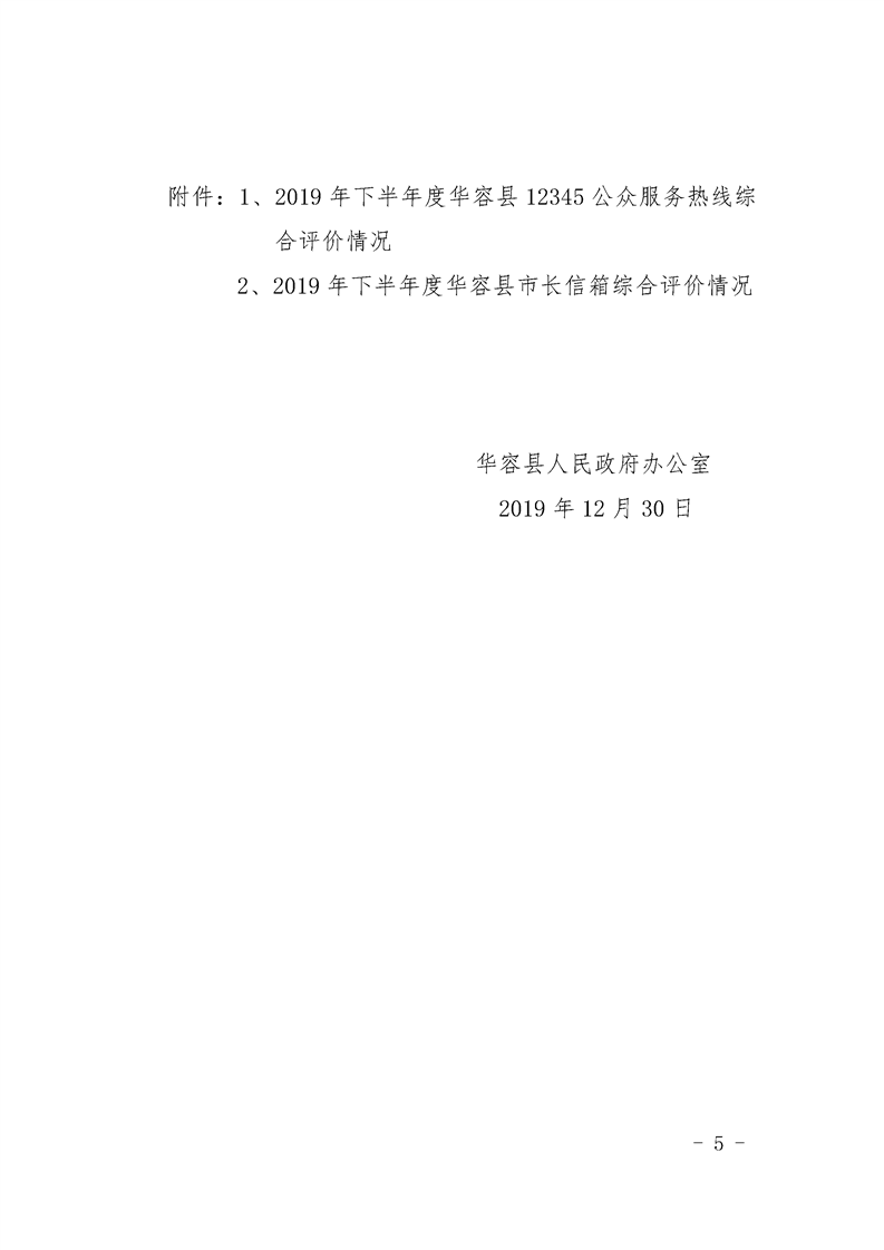 华容县人民政府办公室 关于2019年下半年“12345”公众服务热线、县市长信箱办理情况的通报