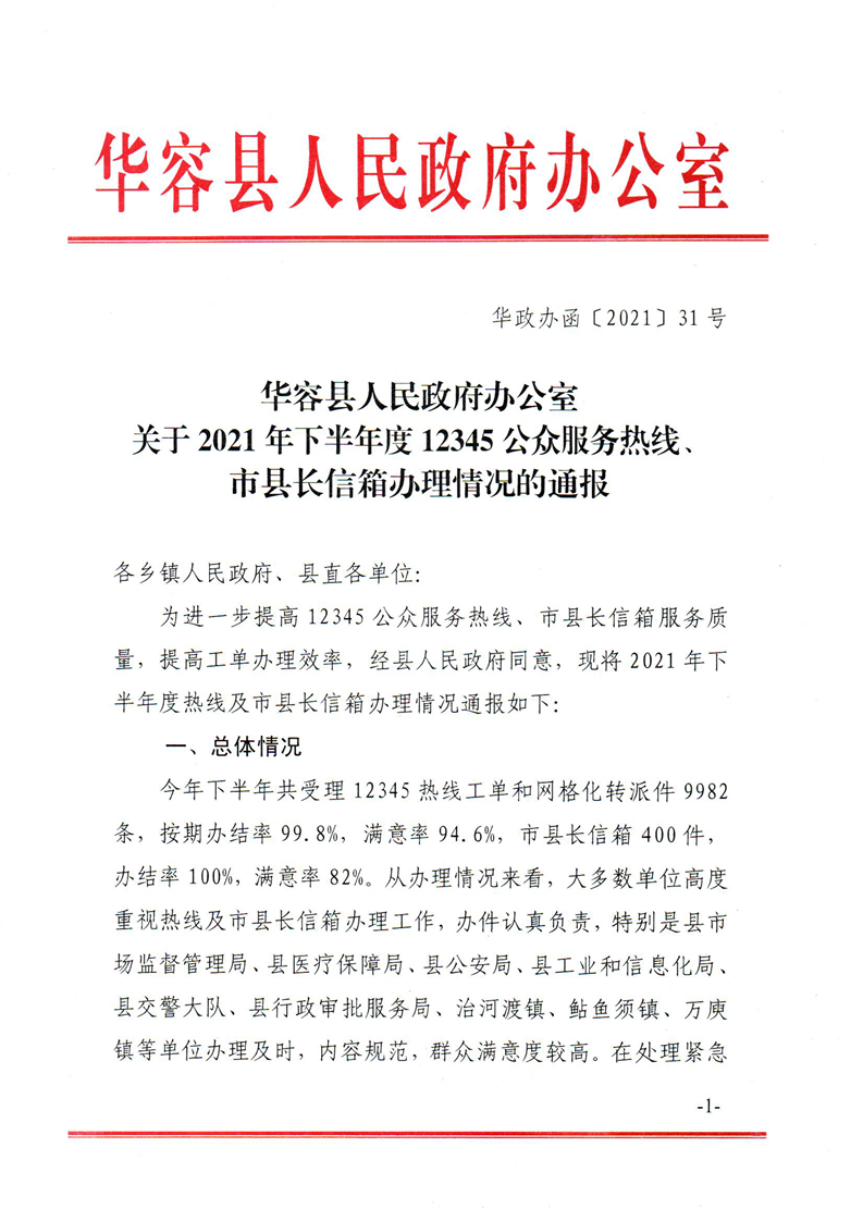关于2021年下半年度12345公众服务热线、市县长信箱办理情况的通报