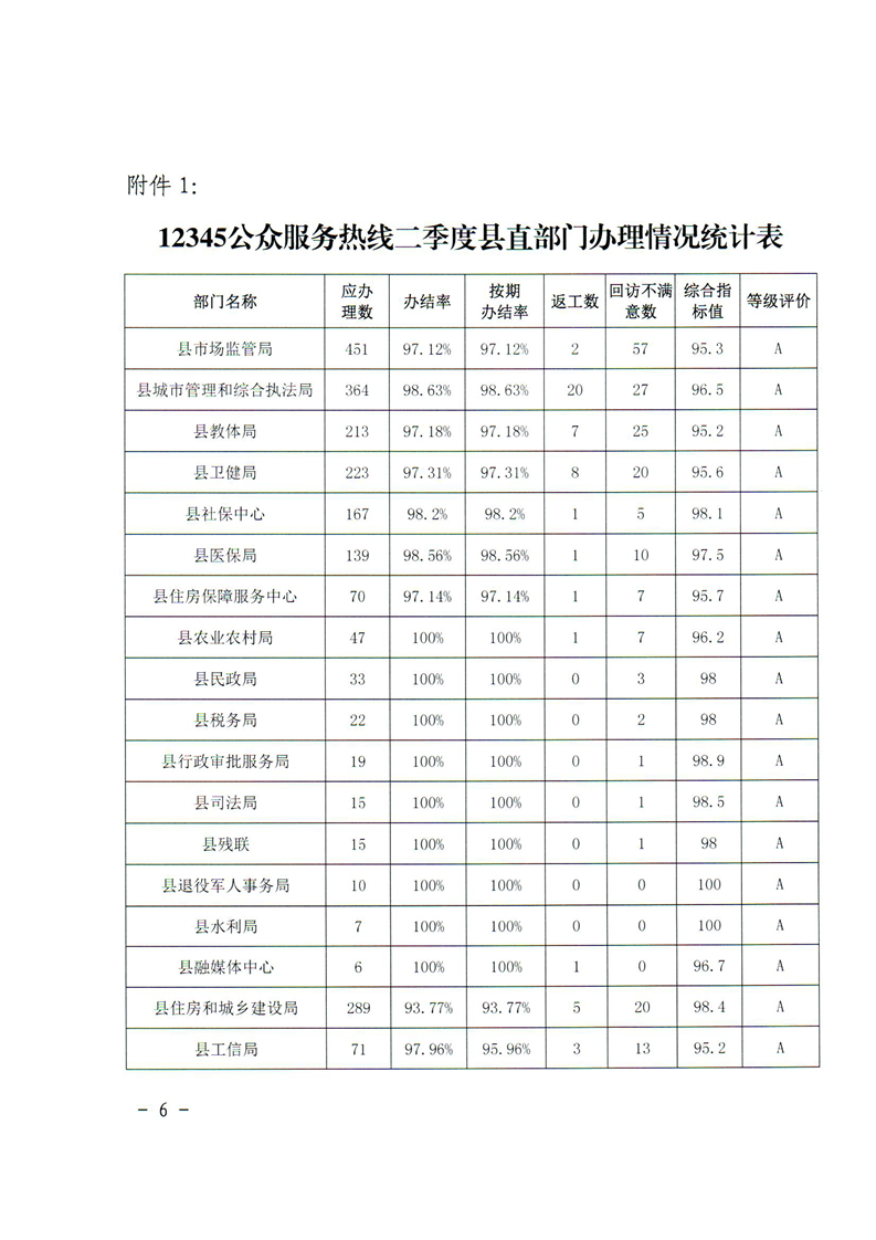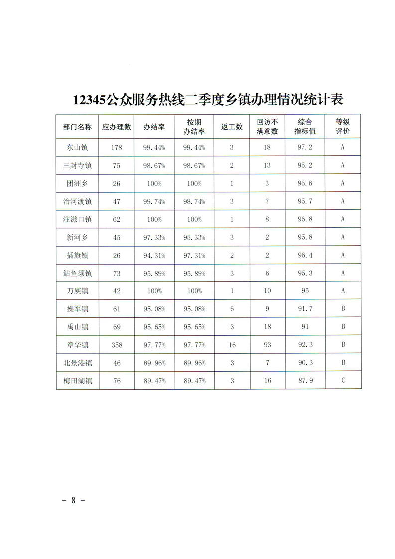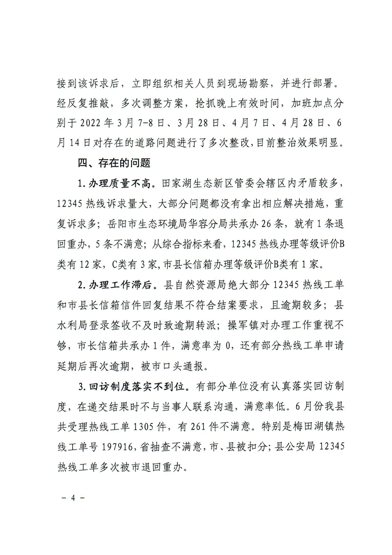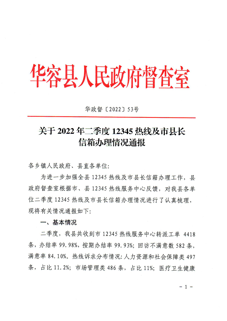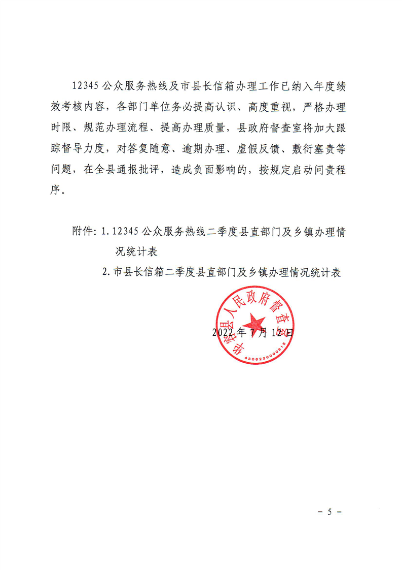 关于2022年二季度“12345”热线及市县长信箱办理情况通报