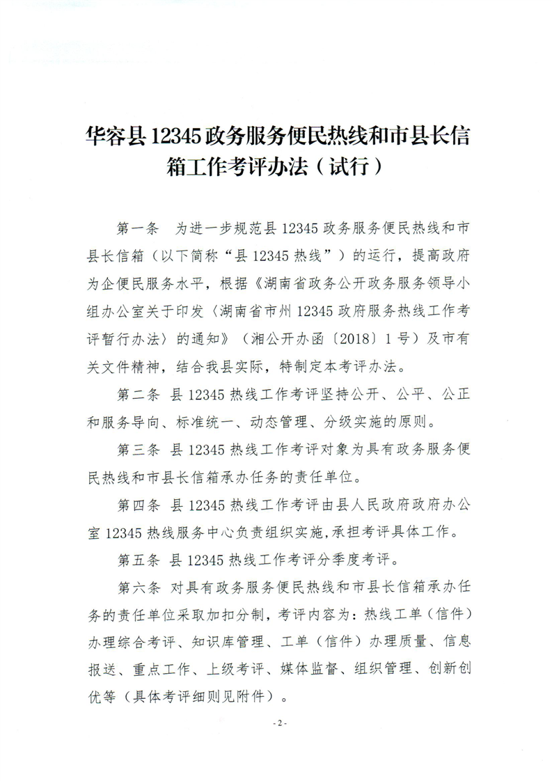 关于印发《华容县12345政务服务便民热线和市县长信箱工作考评办法》(试行)的通知