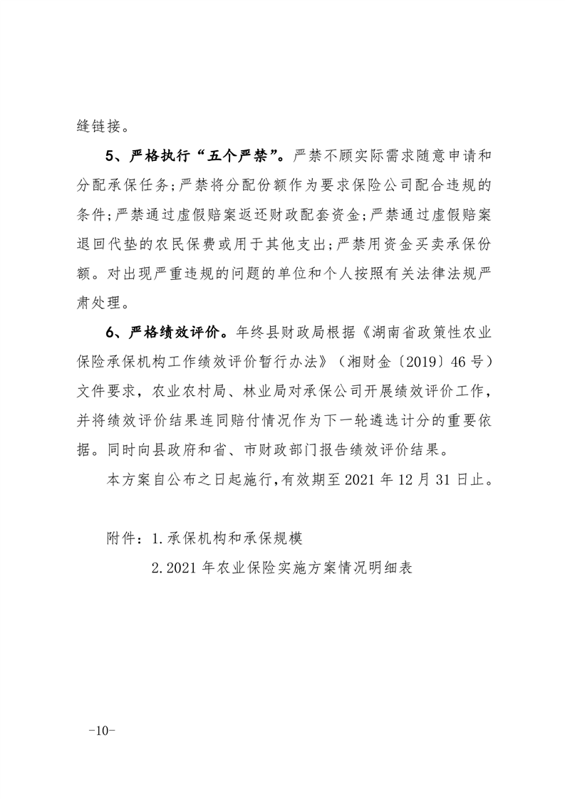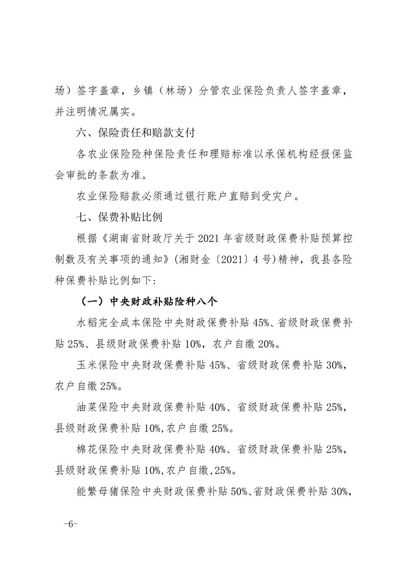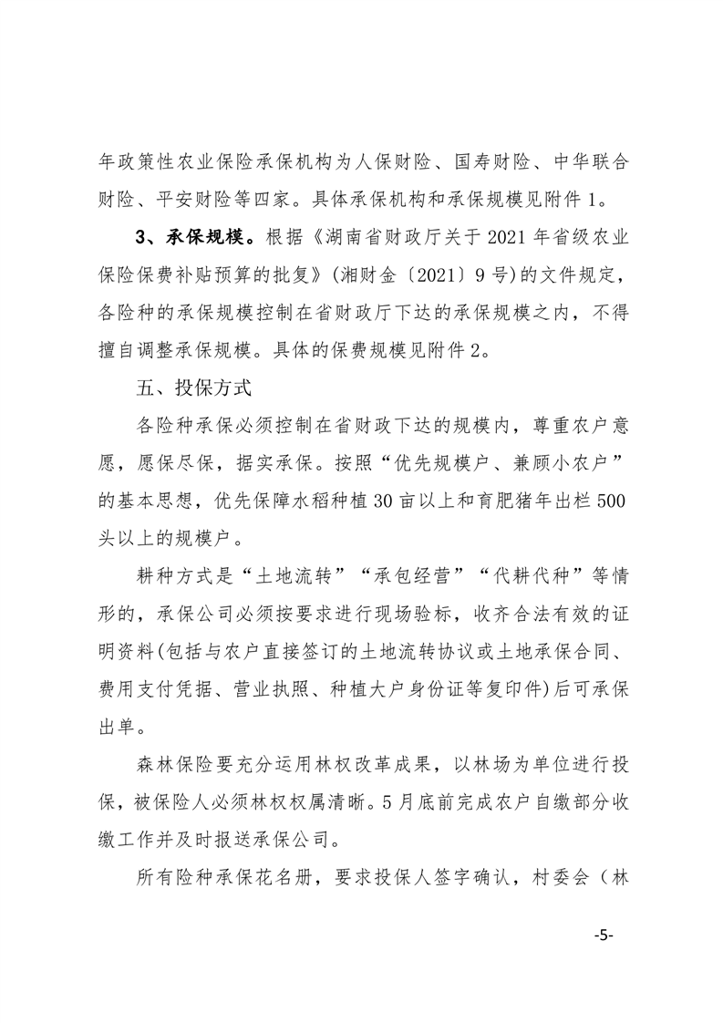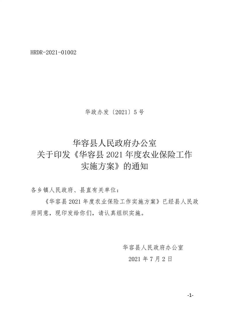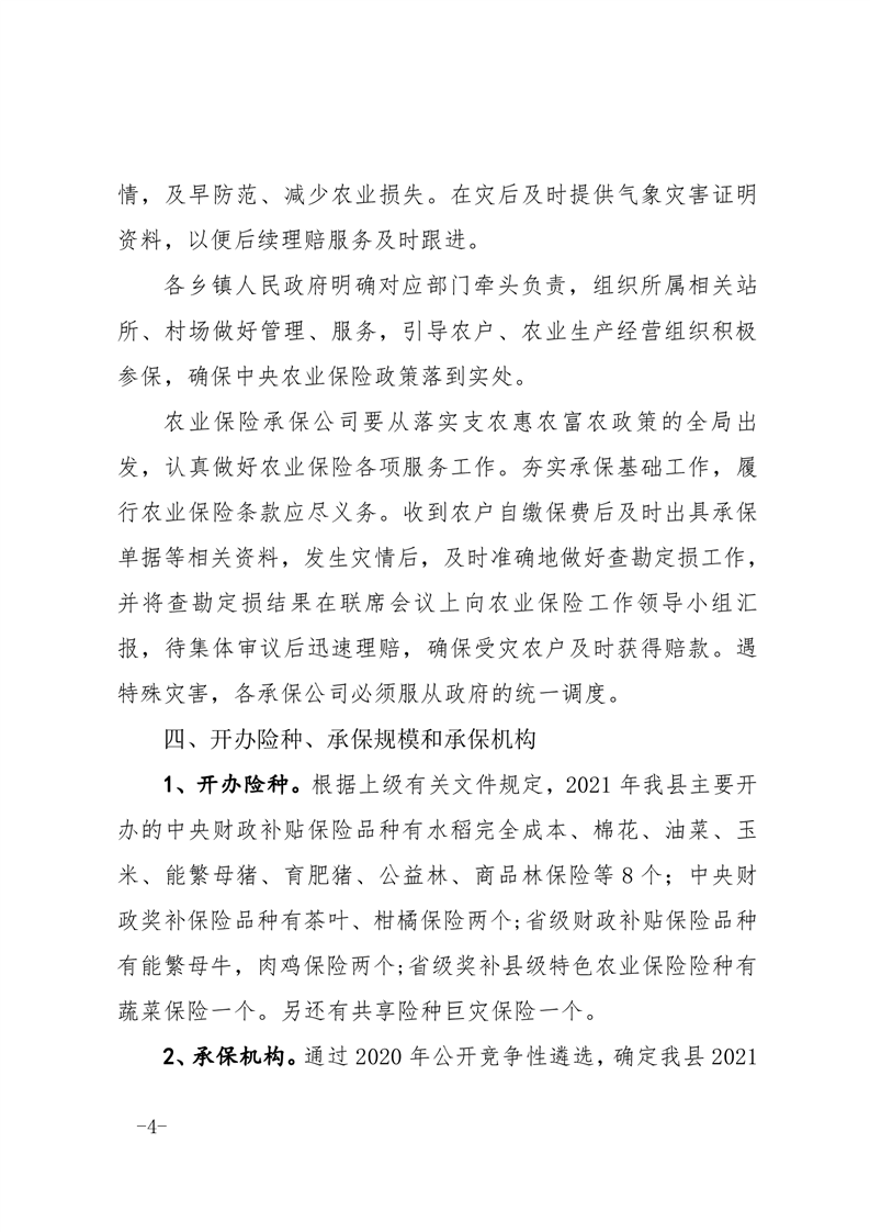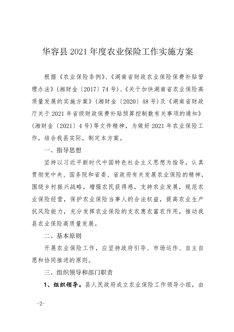 华容县人民政府办公室关于印发《华容县2021年度农业保险工作实施方案》的通知