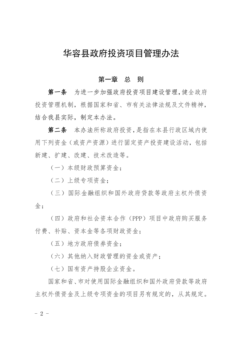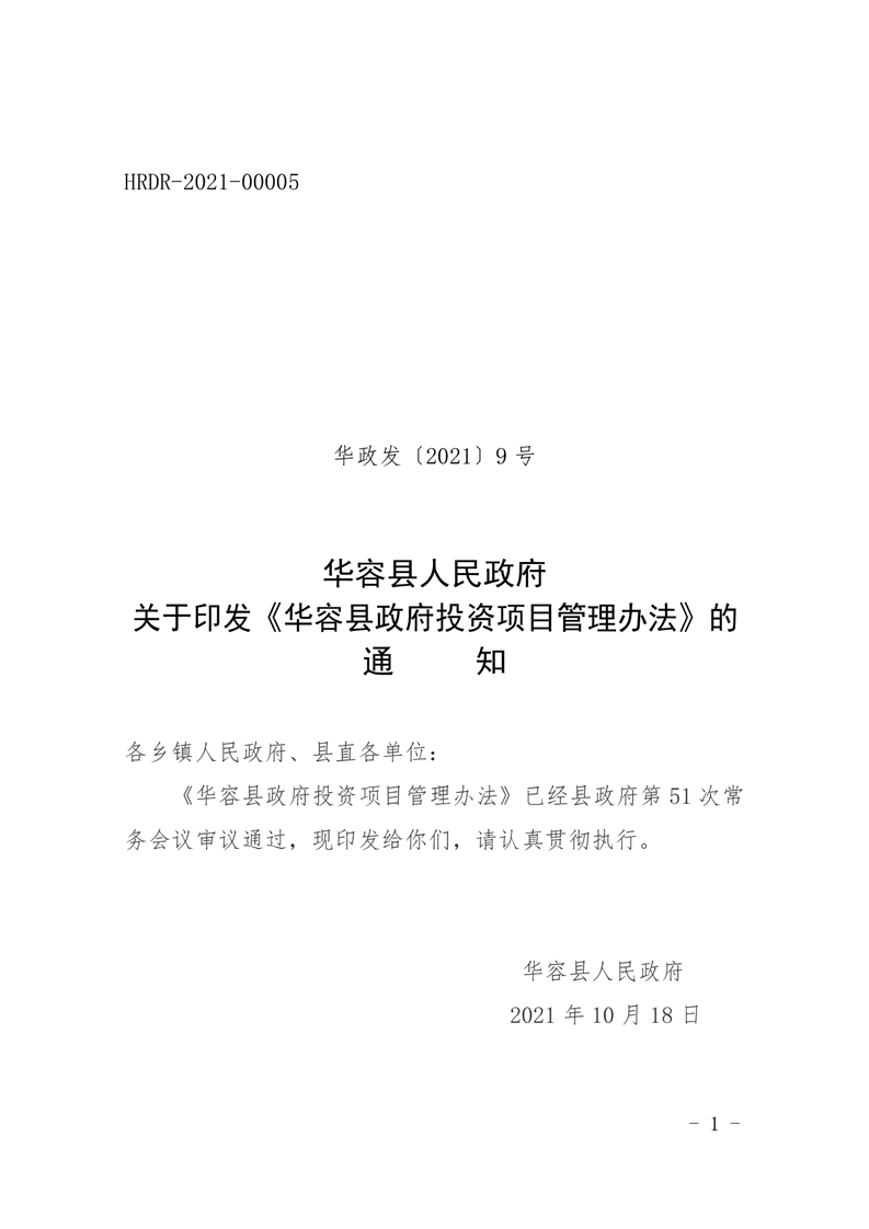 华容县人民政府关于印发《华容县政府投资项目管理办法》的通知
