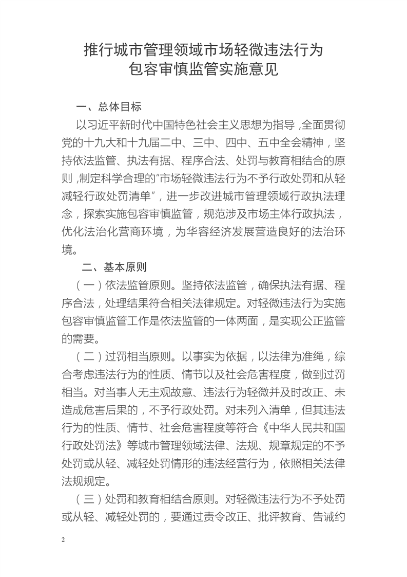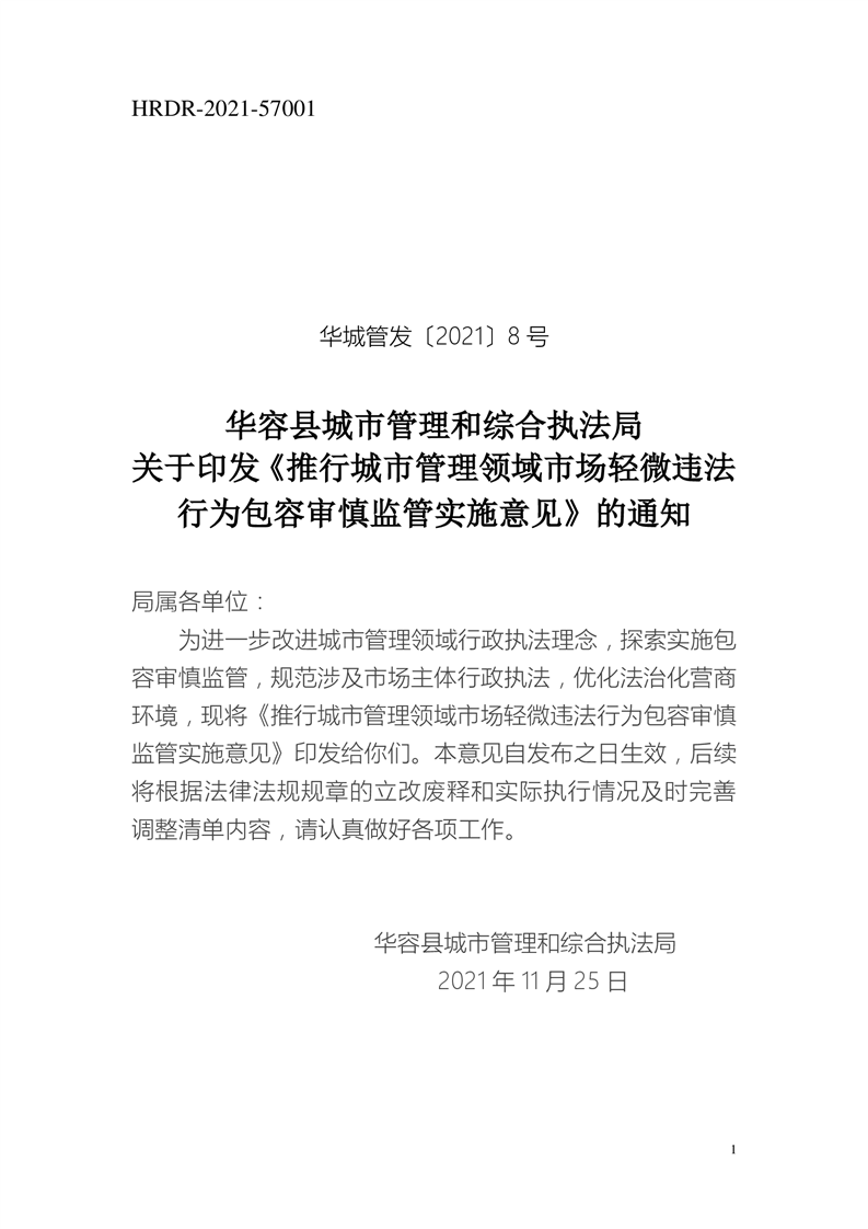 华容县城市管理和综合执法局关于印发《推行城市管理领域市场轻微违法行为包容审慎监管实施意见》的通知