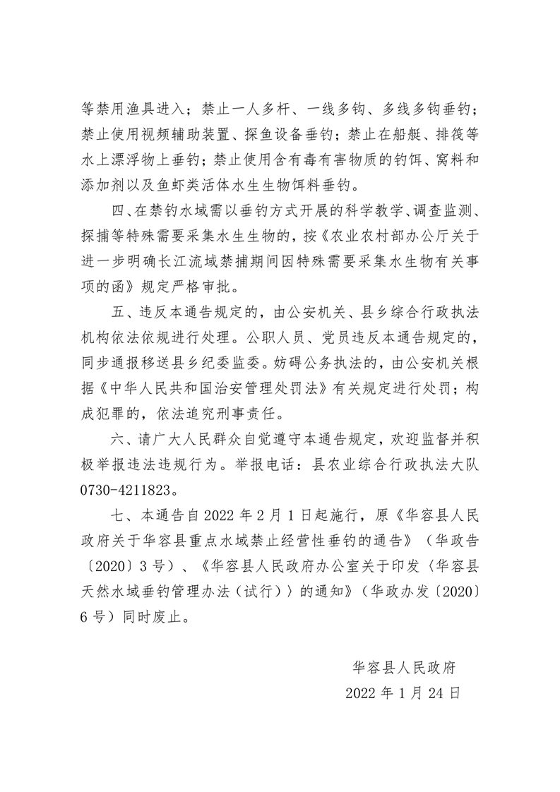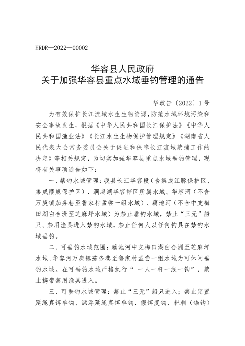 华容县人民政府关于加强华容县重点水域垂钓管理的通告