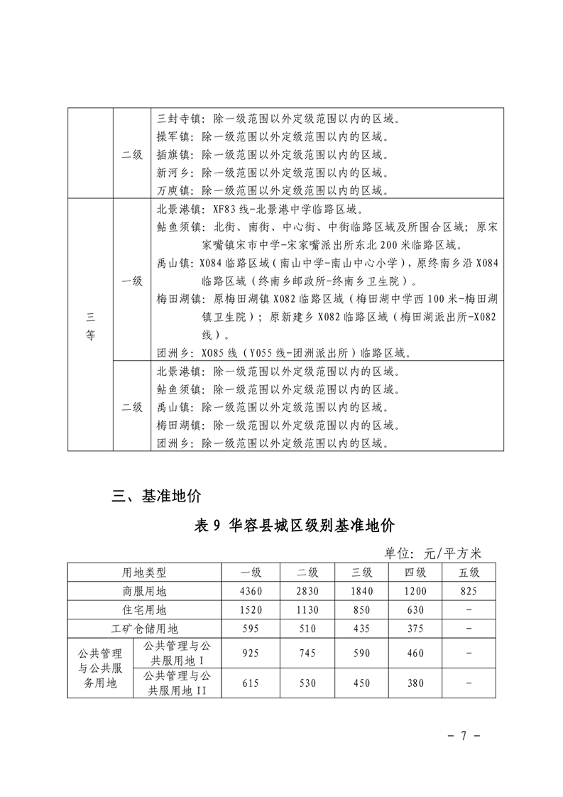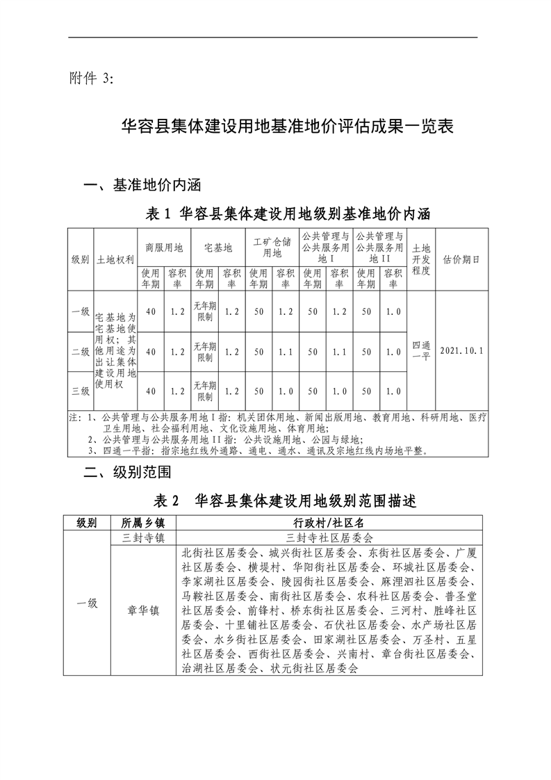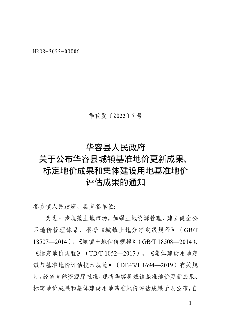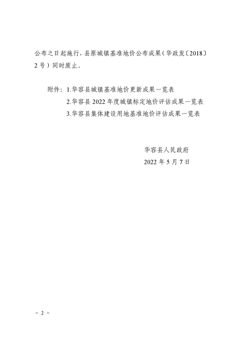 华容县人民政府关于公布华容县城镇基准地价更新成果、标定地价成果和集体建设用地基准地价评估成果的通知