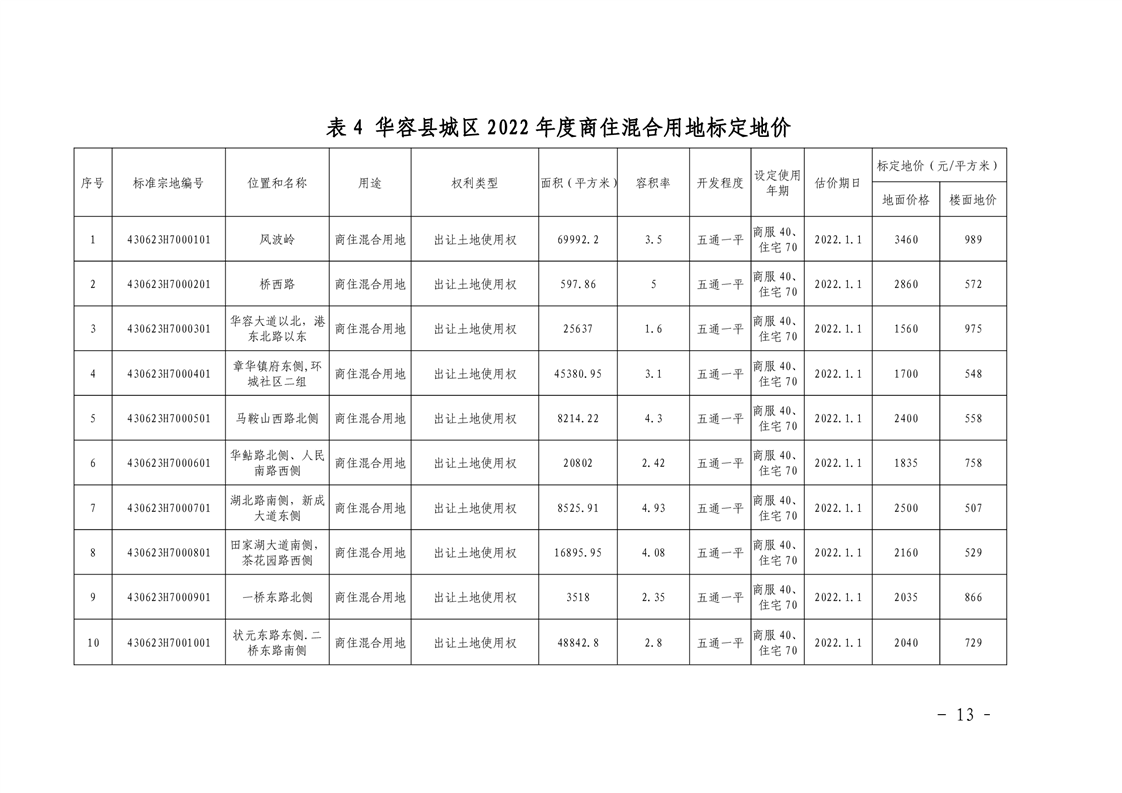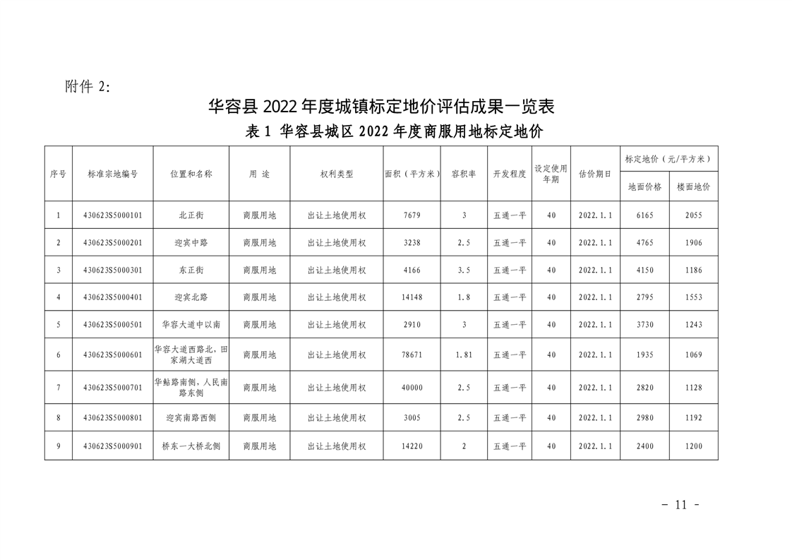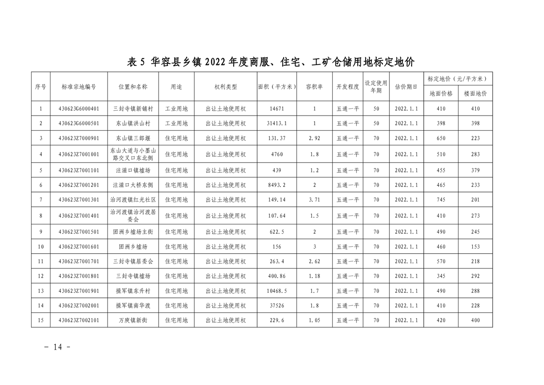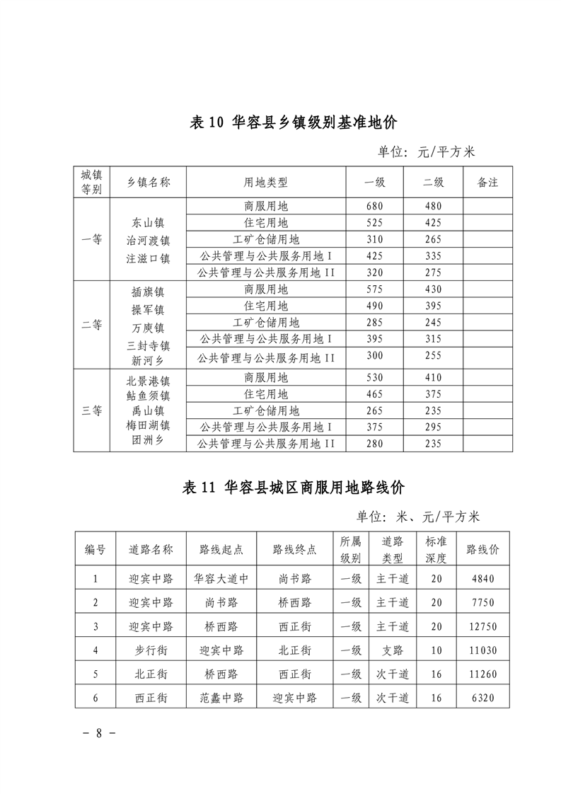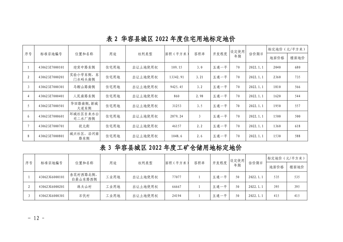 华容县人民政府关于公布华容县城镇基准地价更新成果、标定地价成果和集体建设用地基准地价评估成果的通知