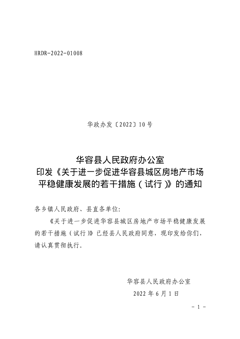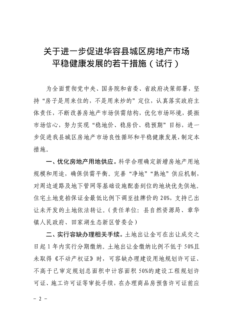华容县人民政府办公室印发《关于进一步促进华容县城区房地产市场平稳健康发展的若干措施(试行)》的通知